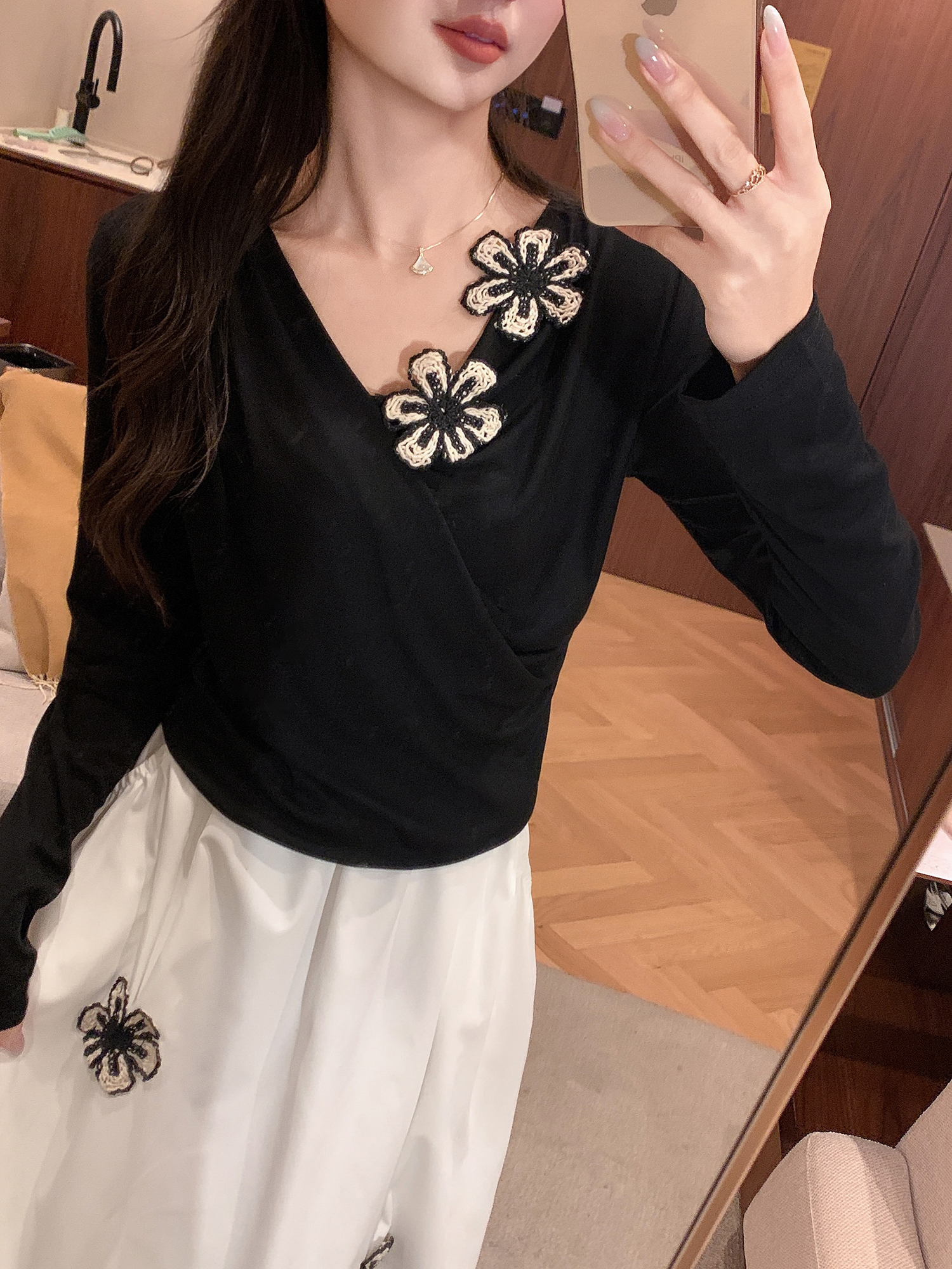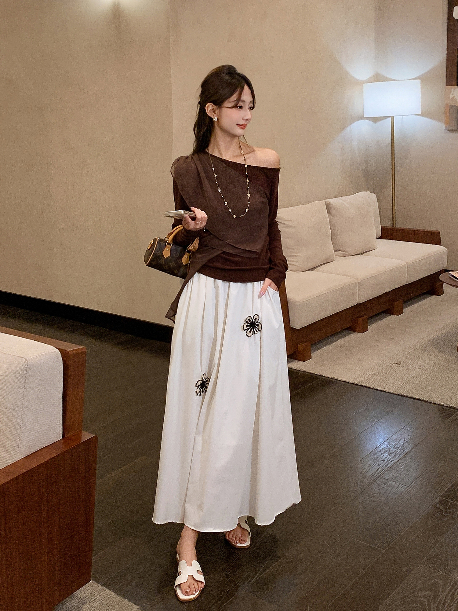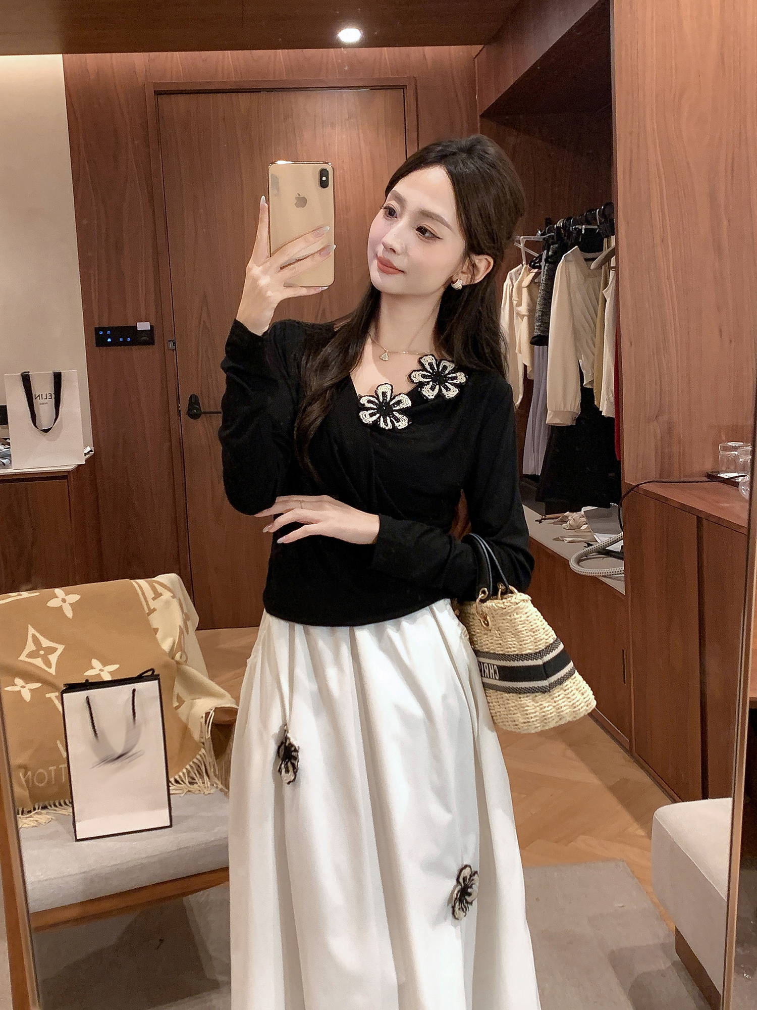 张心子【尼斯周末】高级感减龄刺绣半身裙女秋季新款高腰大摆伞裙 U2508045