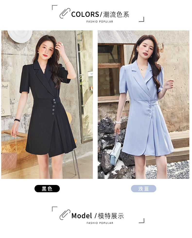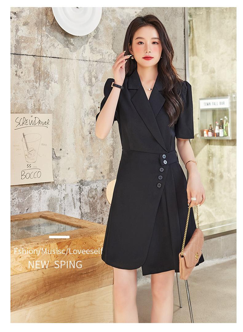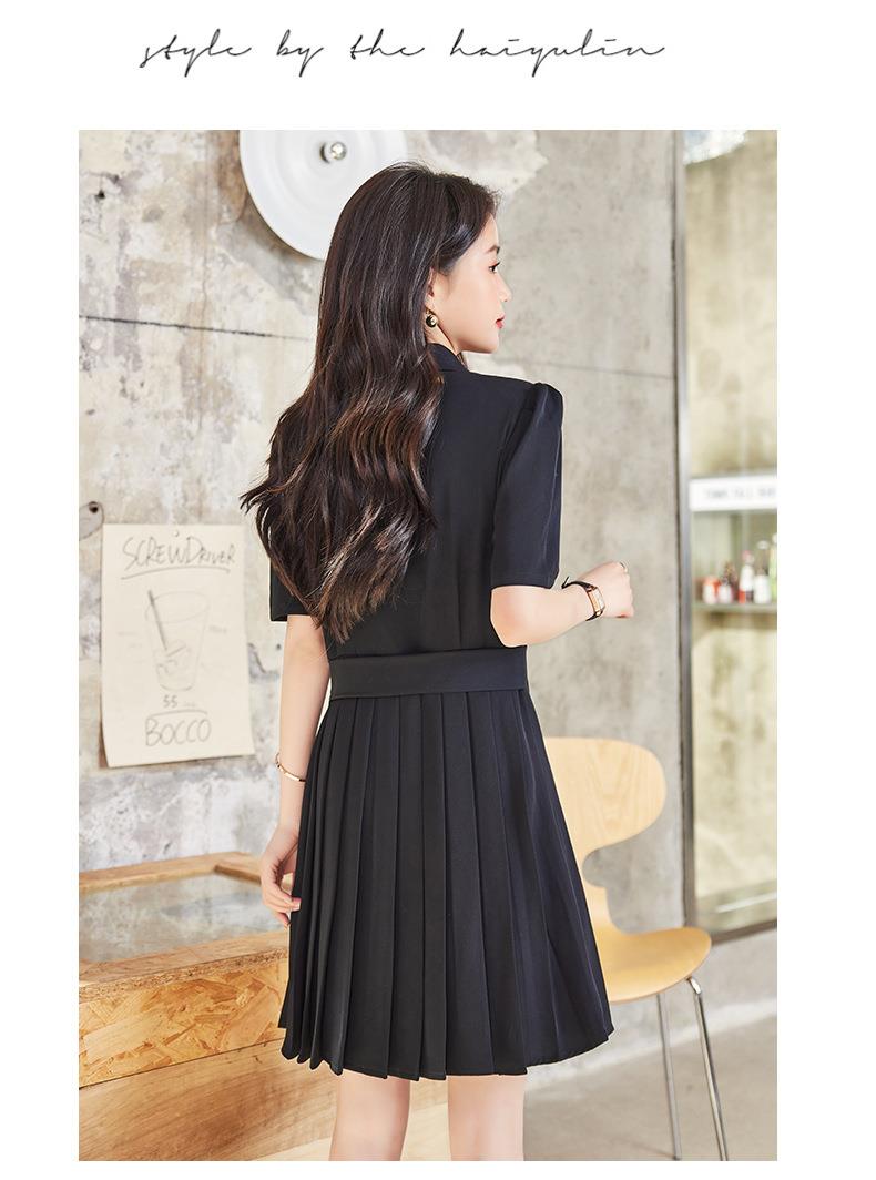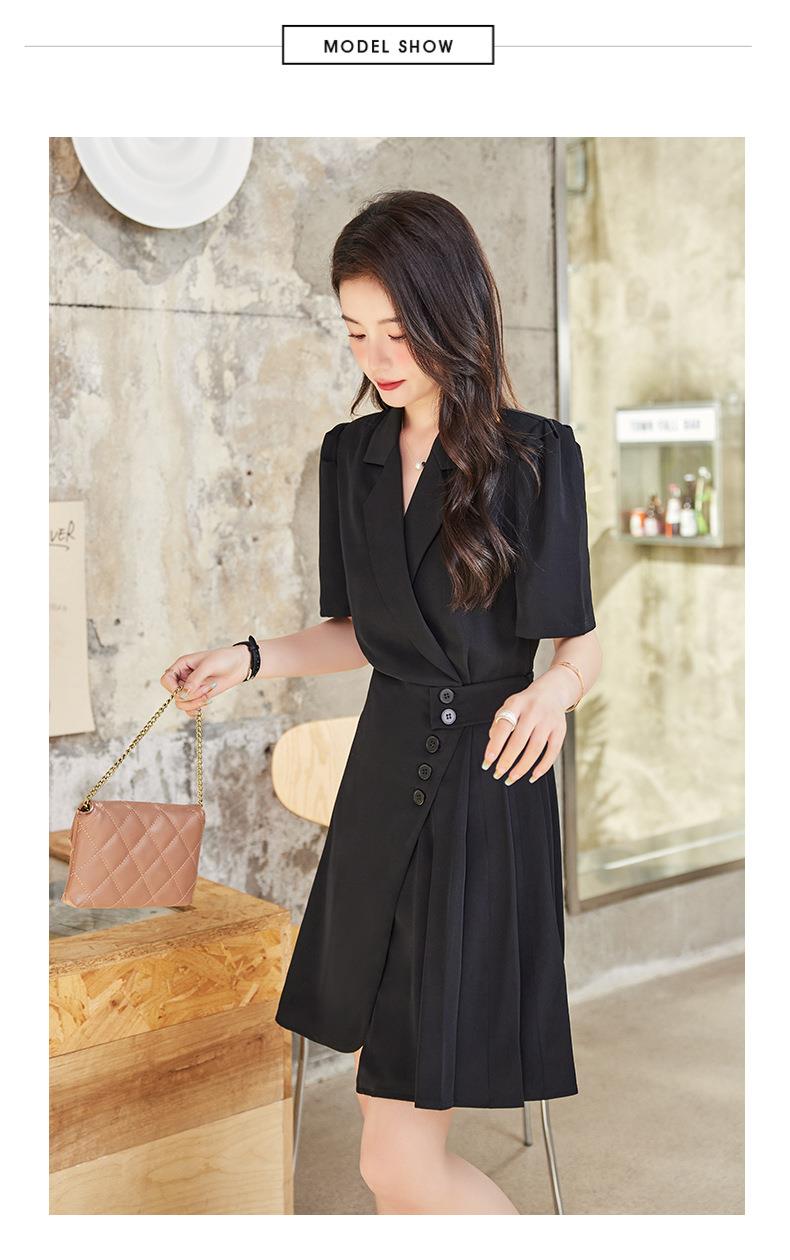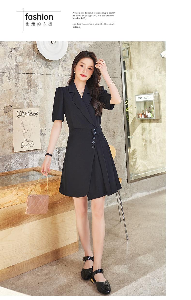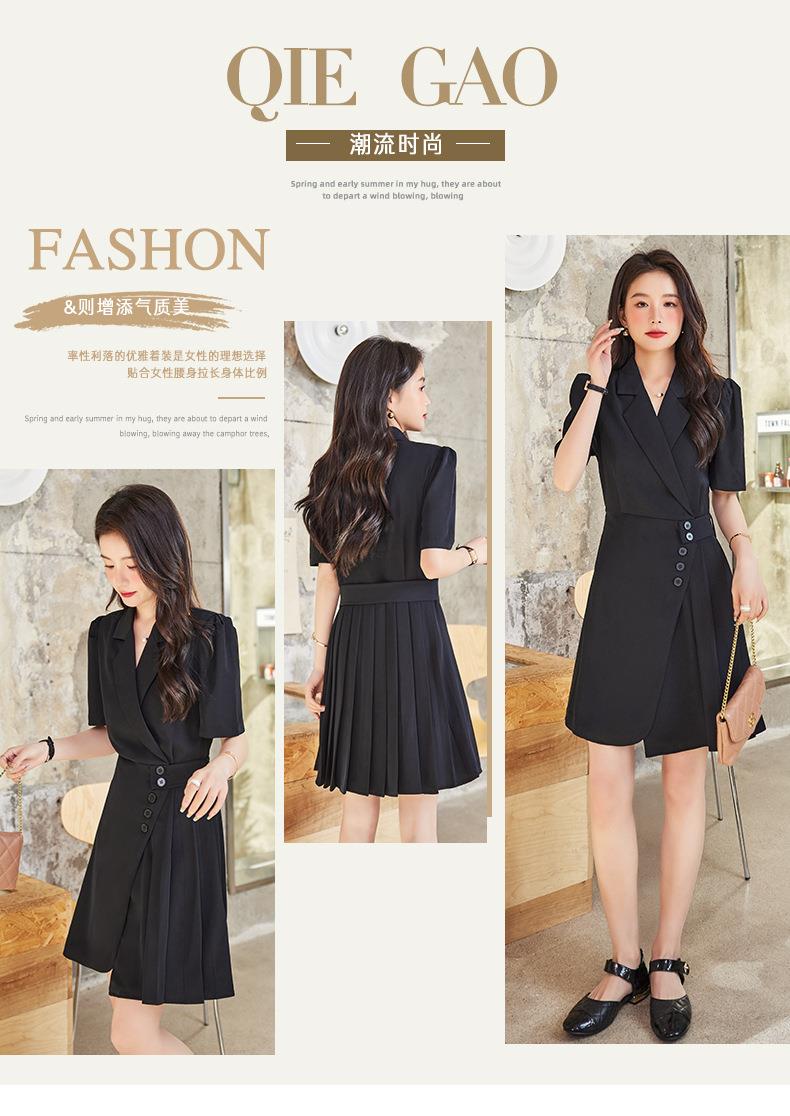 娜璐多 西装连衣裙女夏薄款短袖高级感赫本风气质小黑裙收腰显瘦通勤裙子