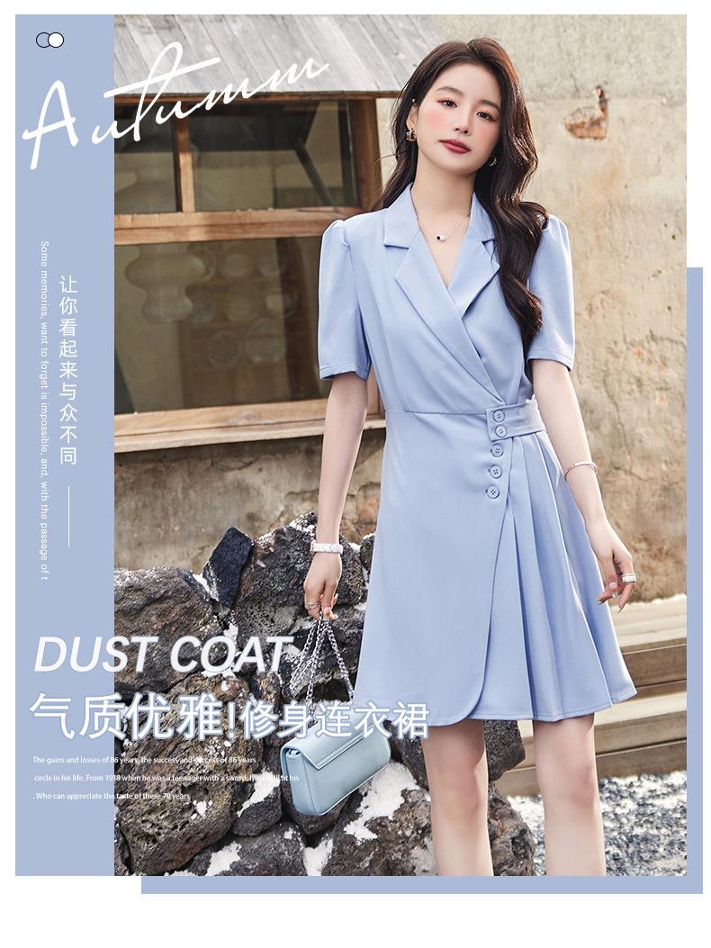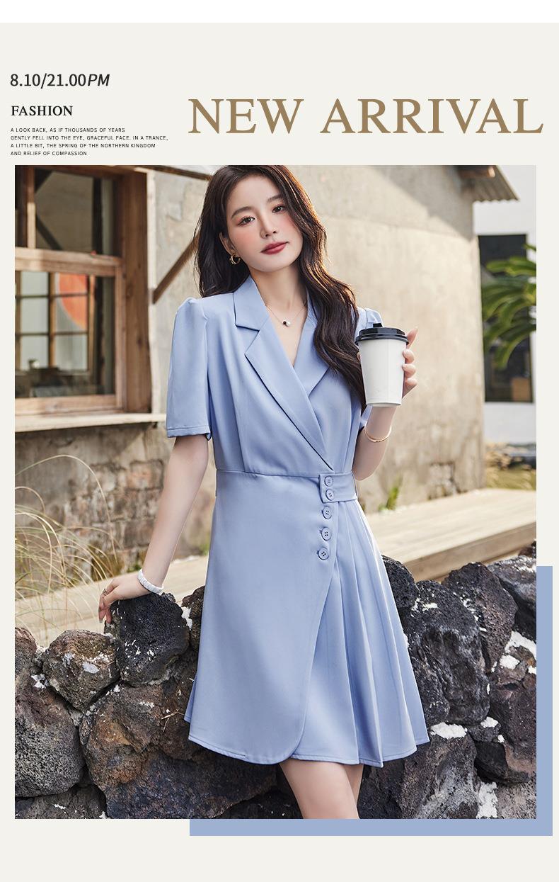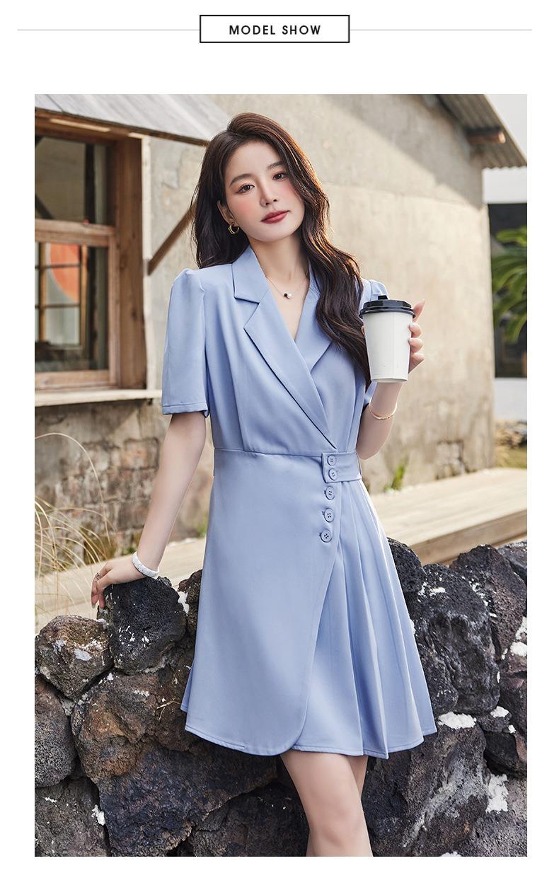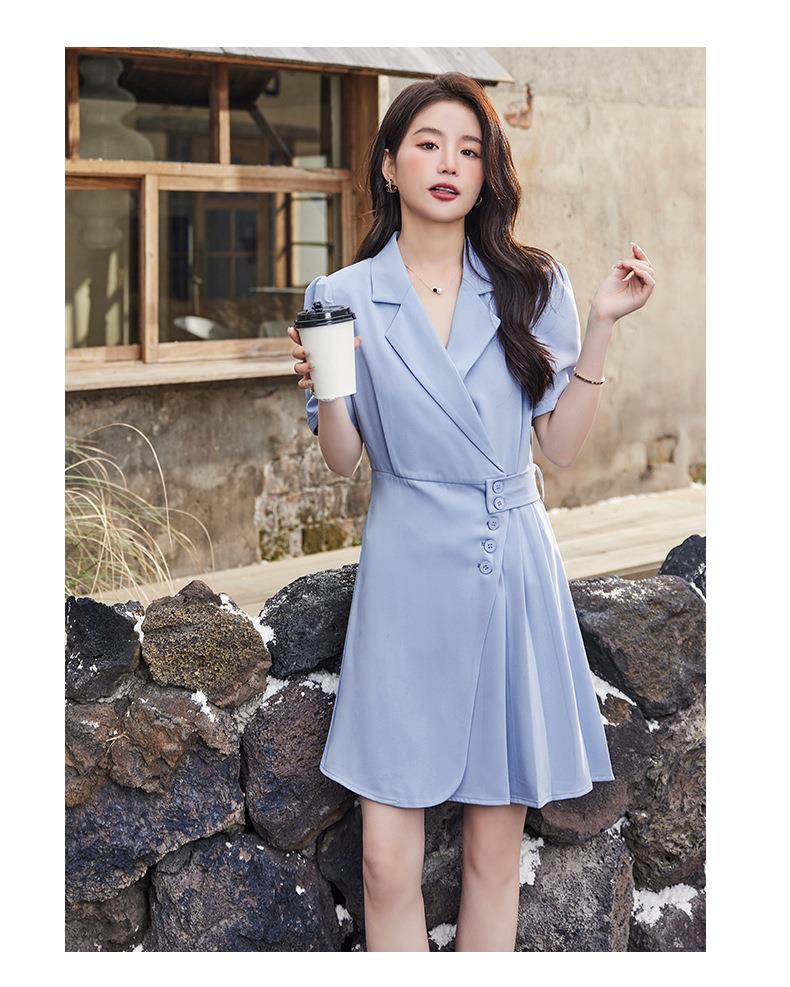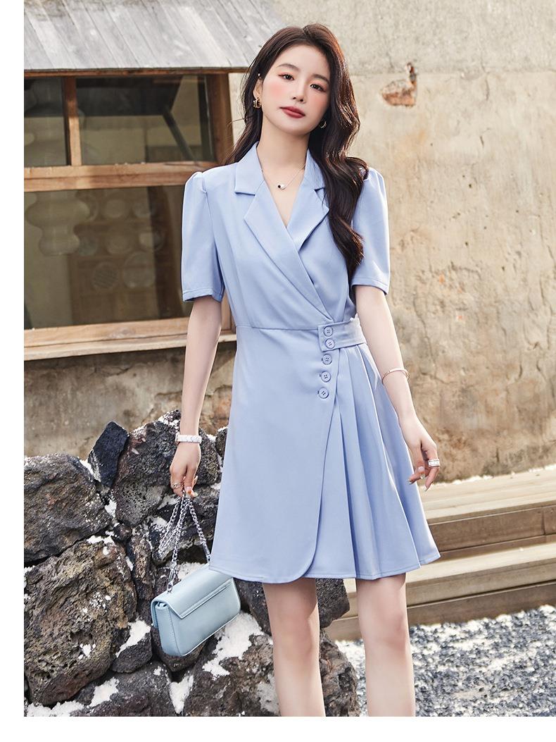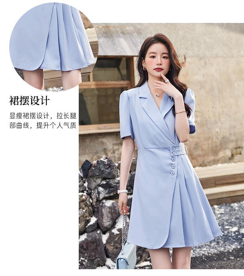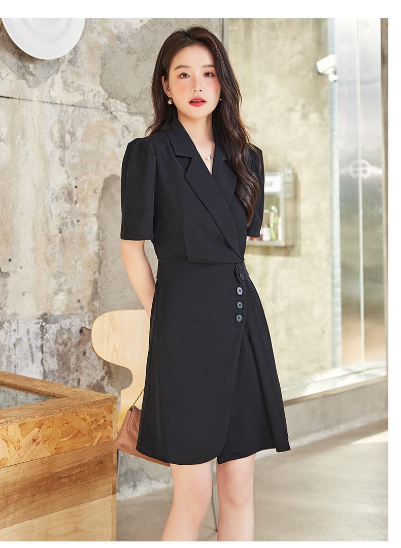 娜璐多 西装连衣裙女夏薄款短袖高级感赫本风气质小黑裙收腰显瘦通勤裙子