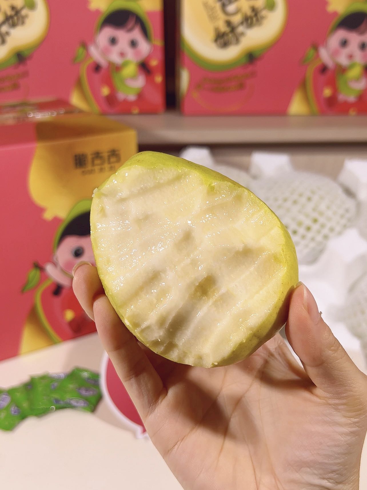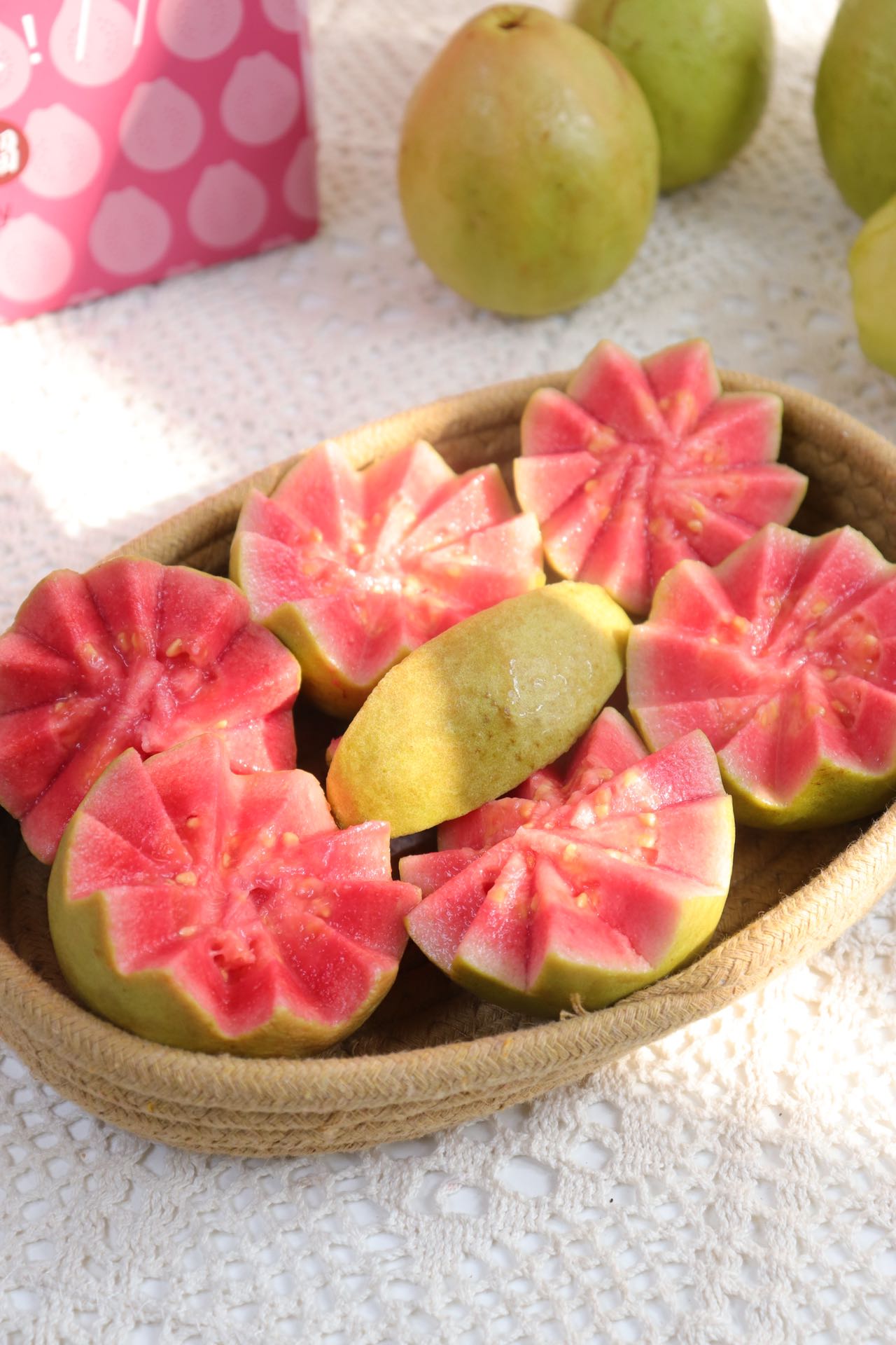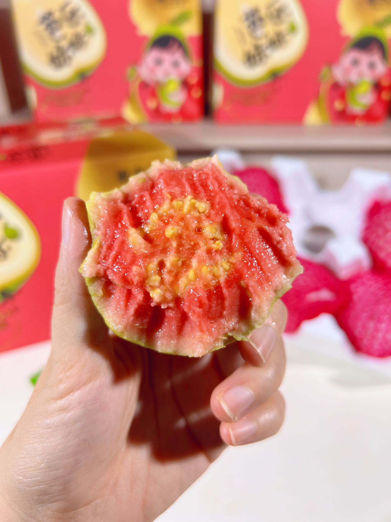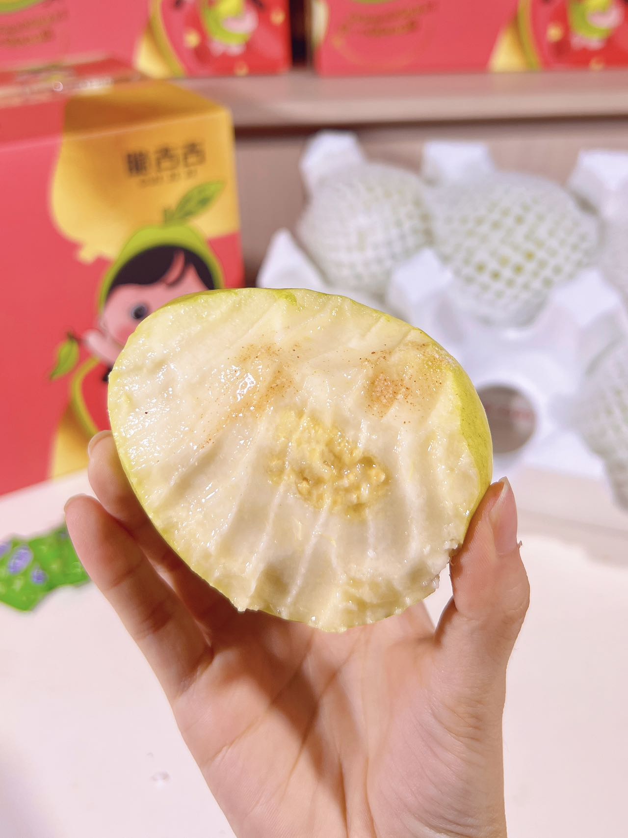 一口咬下去皮脆肉嫩、质地细腻、柔滑香甜、润口舒心,风味接近于梨和台湾青枣之间同时,清雅甜蜜的香气也会在嘴巴里弥散开来。😆😆第一次吃芭乐的人,都会对口感和香气的巧妙融合印象深刻。