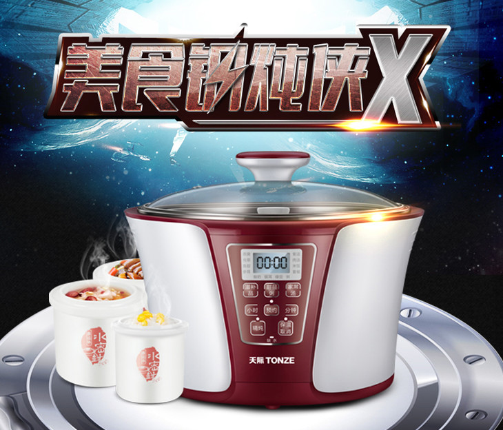 天际(TONZE) 电炖锅陶瓷隔水炖3.2L电炖盅1锅4胆DGD32-32EG