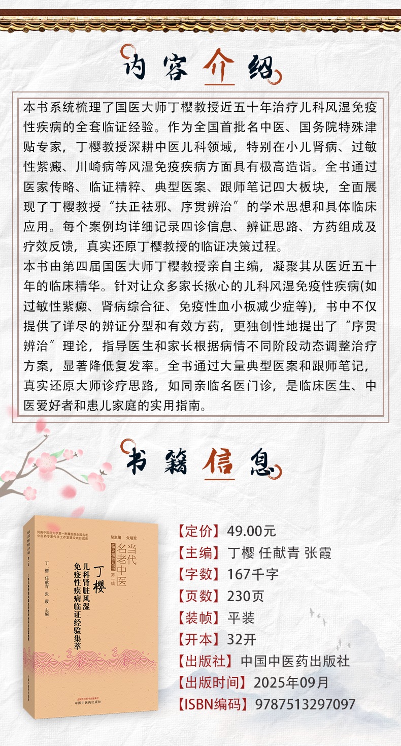丁樱儿科肾脏风湿免疫性疾病临证经验集萃 当代名老中医临床精粹丛书第一辑 丁樱 任献青 张霞 主编9787513297097中国中医药出版社