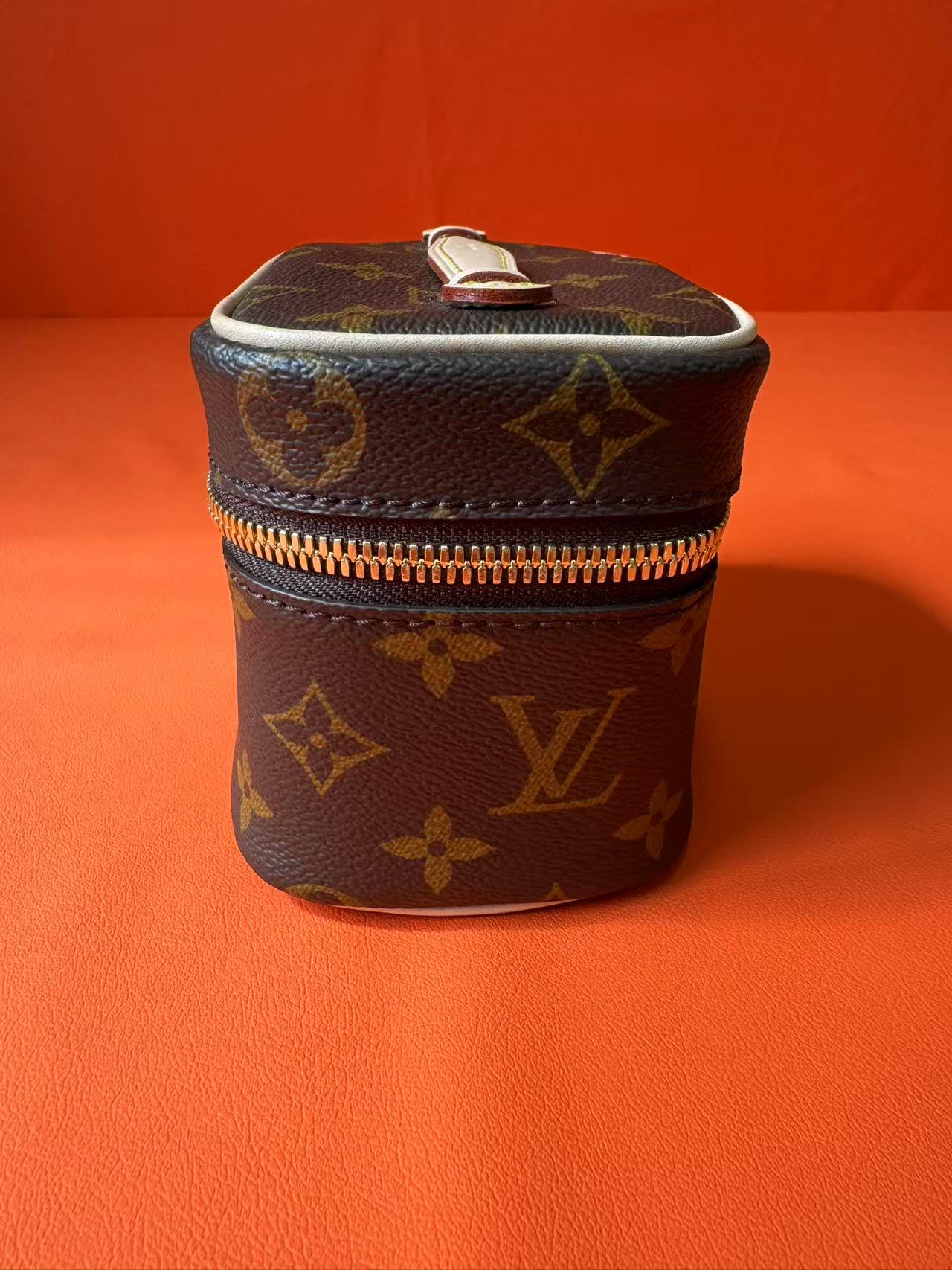 LOUIS VUITTON NICE NANO 经典老花拉链开合 涂层帆布拼牛皮革饰边 收纳包化妆手提包 超迷你 女款 棕色