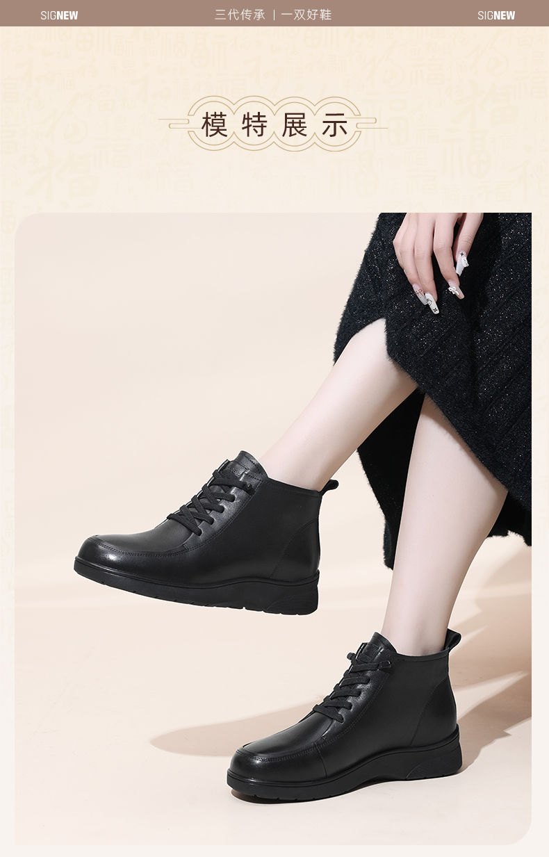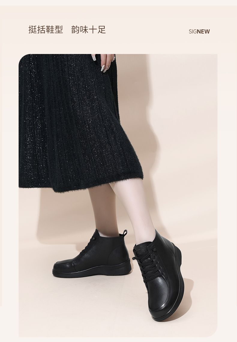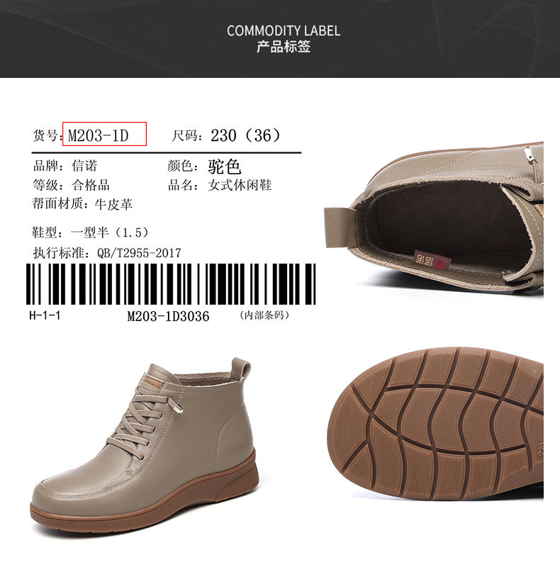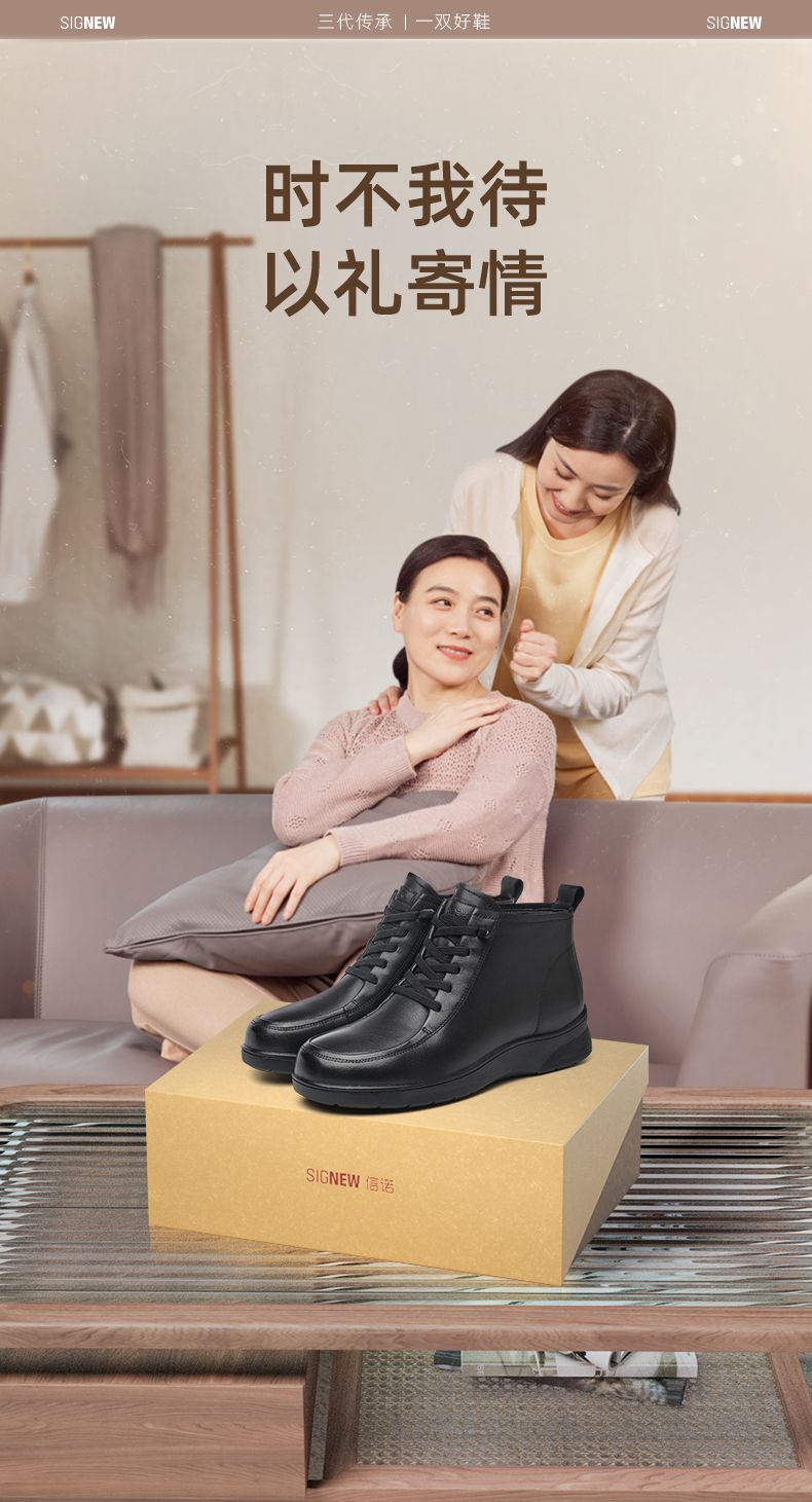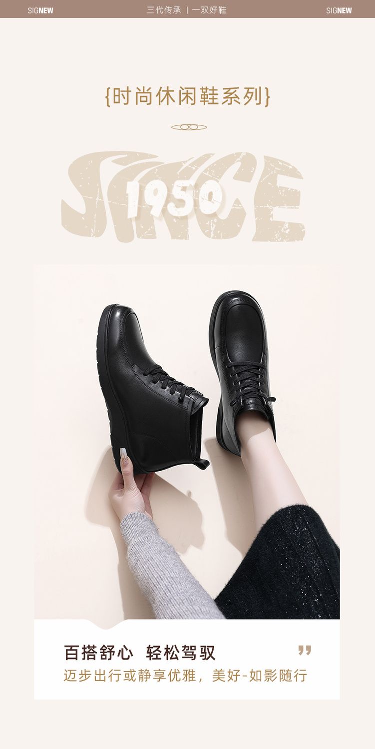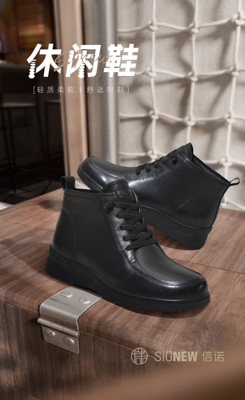 信诺真皮舒适休闲鞋女2024冬季新款加绒棉鞋高帮皮鞋软底妈妈鞋子M203-1D