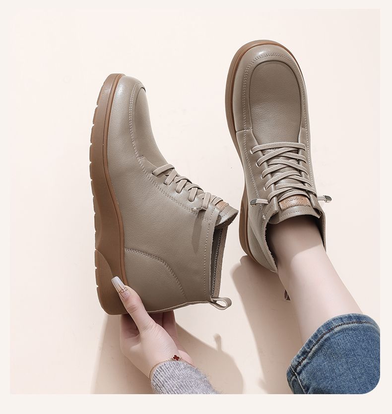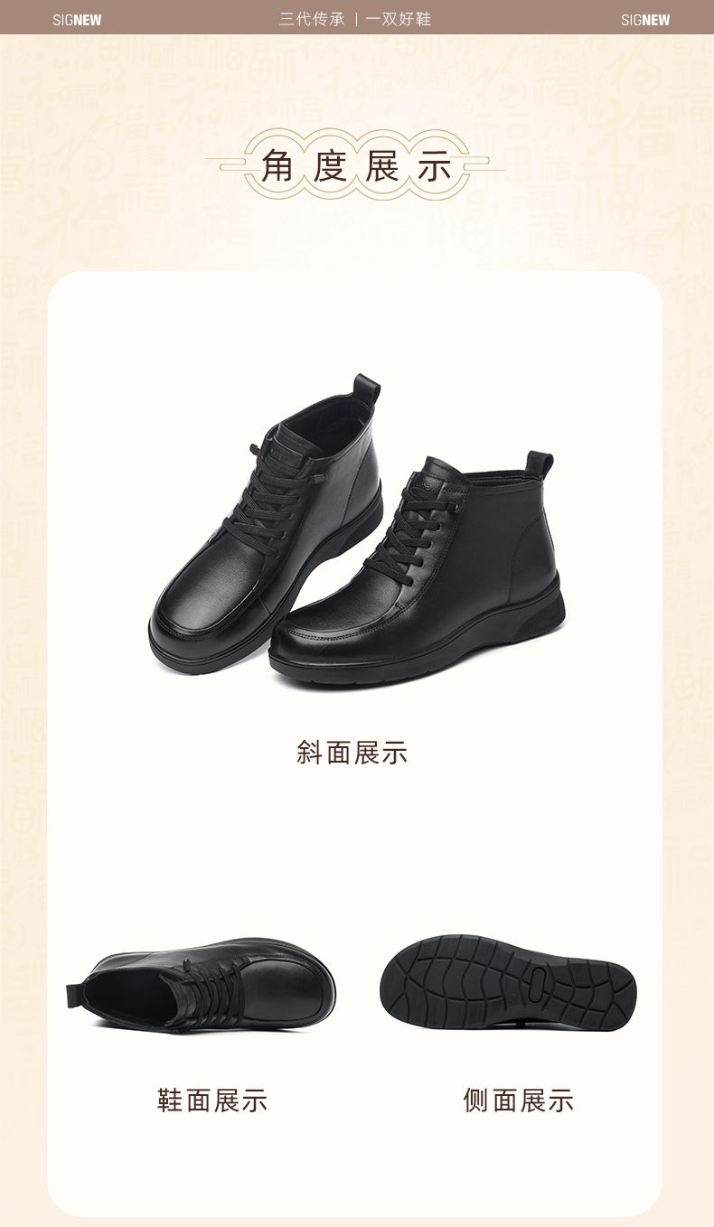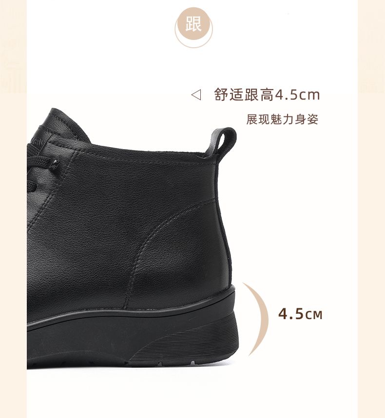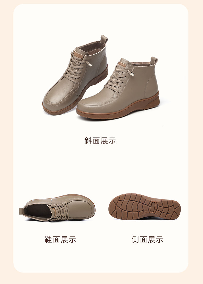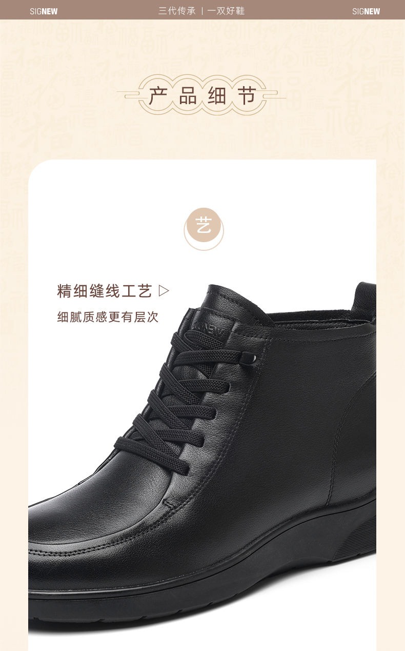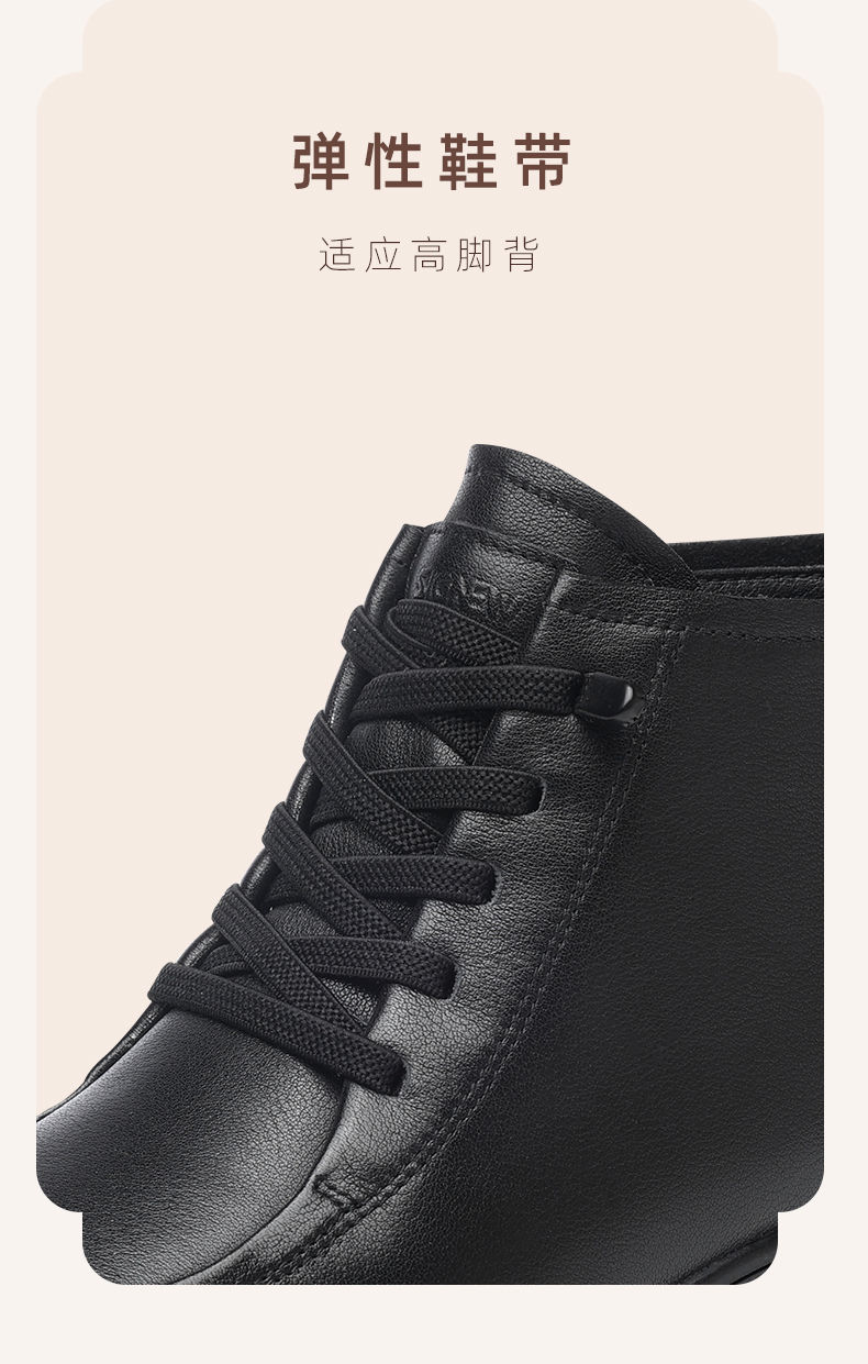 信诺真皮舒适休闲鞋女2024冬季新款加绒棉鞋高帮皮鞋软底妈妈鞋子M203-1D