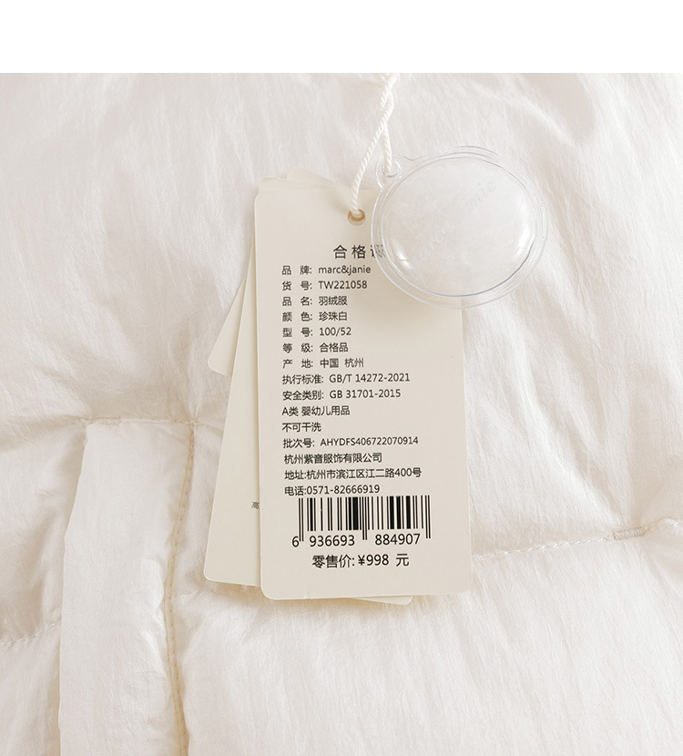 马克珍妮冬装新款 女童超轻加厚保暖羽绒服221058