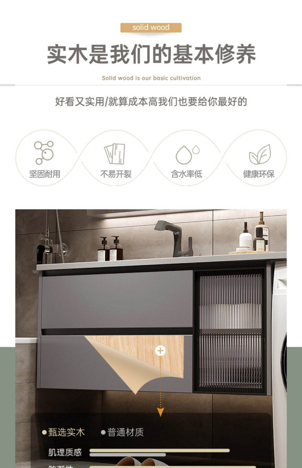 组合卫生间智能洗漱洗脸盆洗衣机轻奢浴室柜实木一体阳台柜台岩板