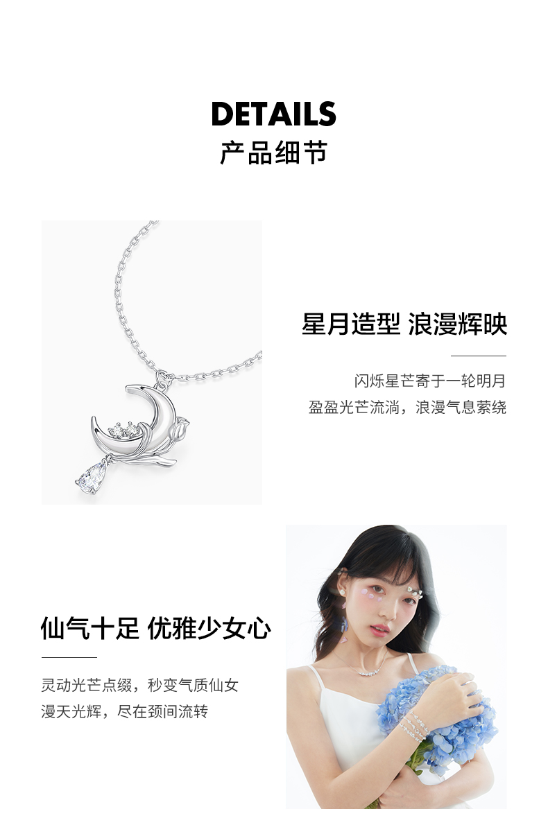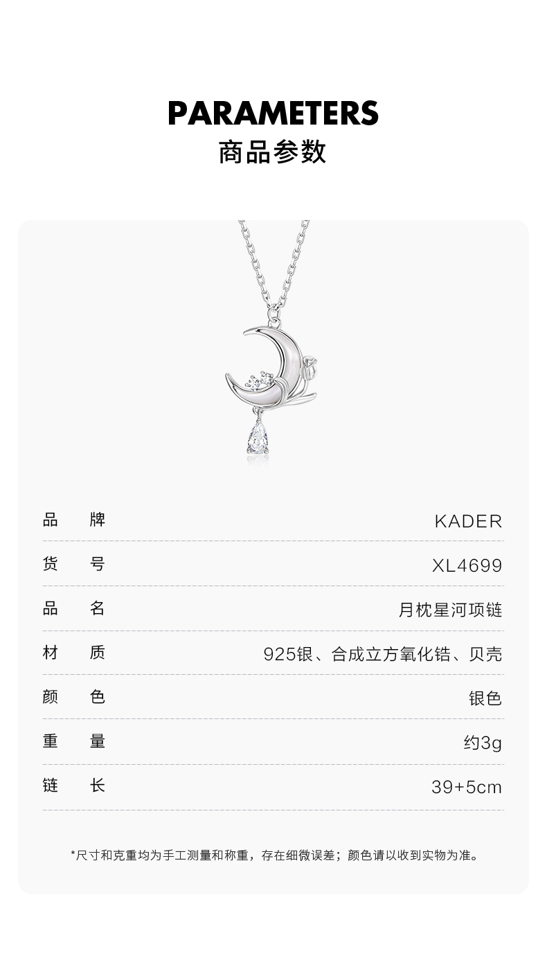 卡蒂罗/KADER 幻梦星月系列 月枕星河项链 925银轻奢时尚小众可调节流苏锁骨链 梦幻浪漫闪耀银河吊坠 女友七夕