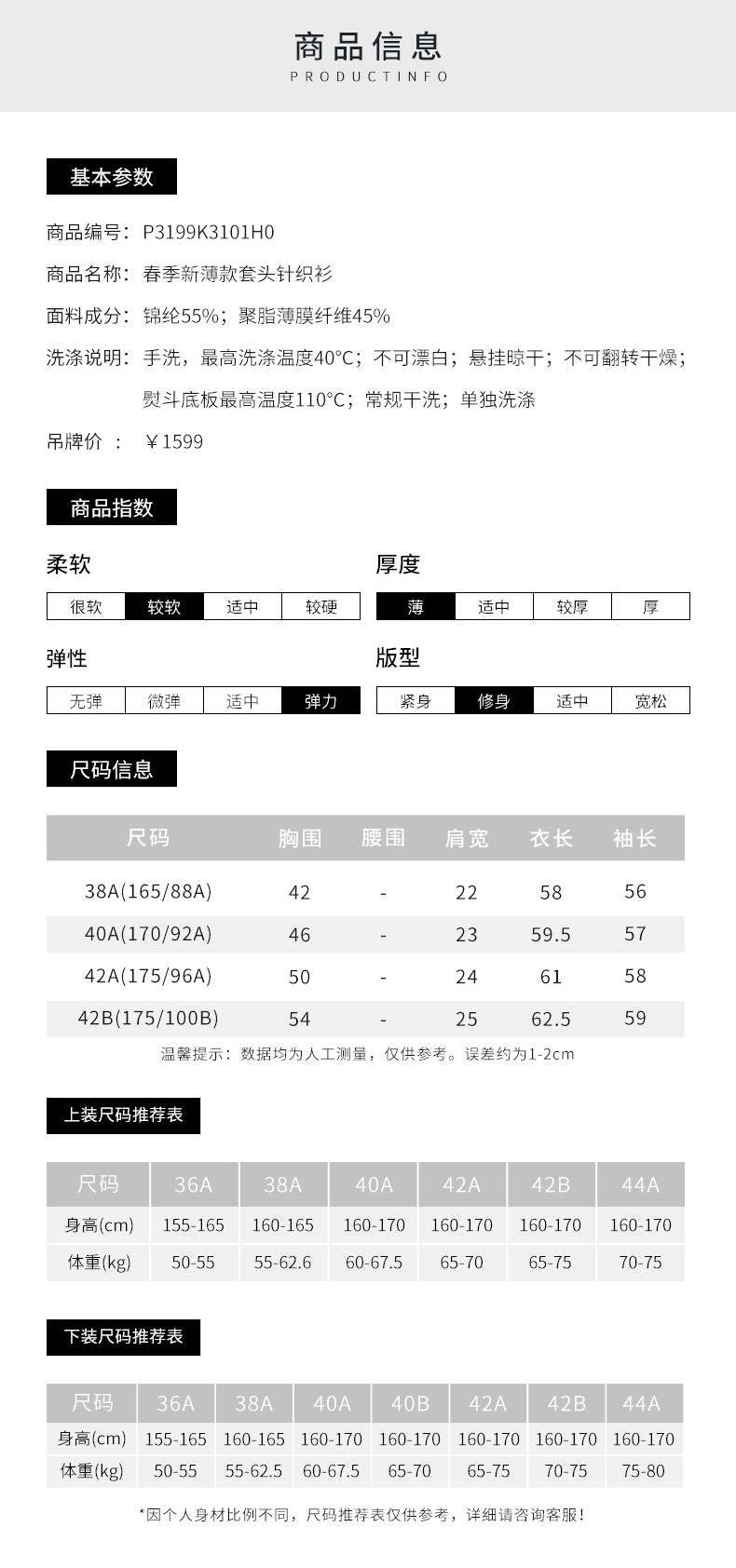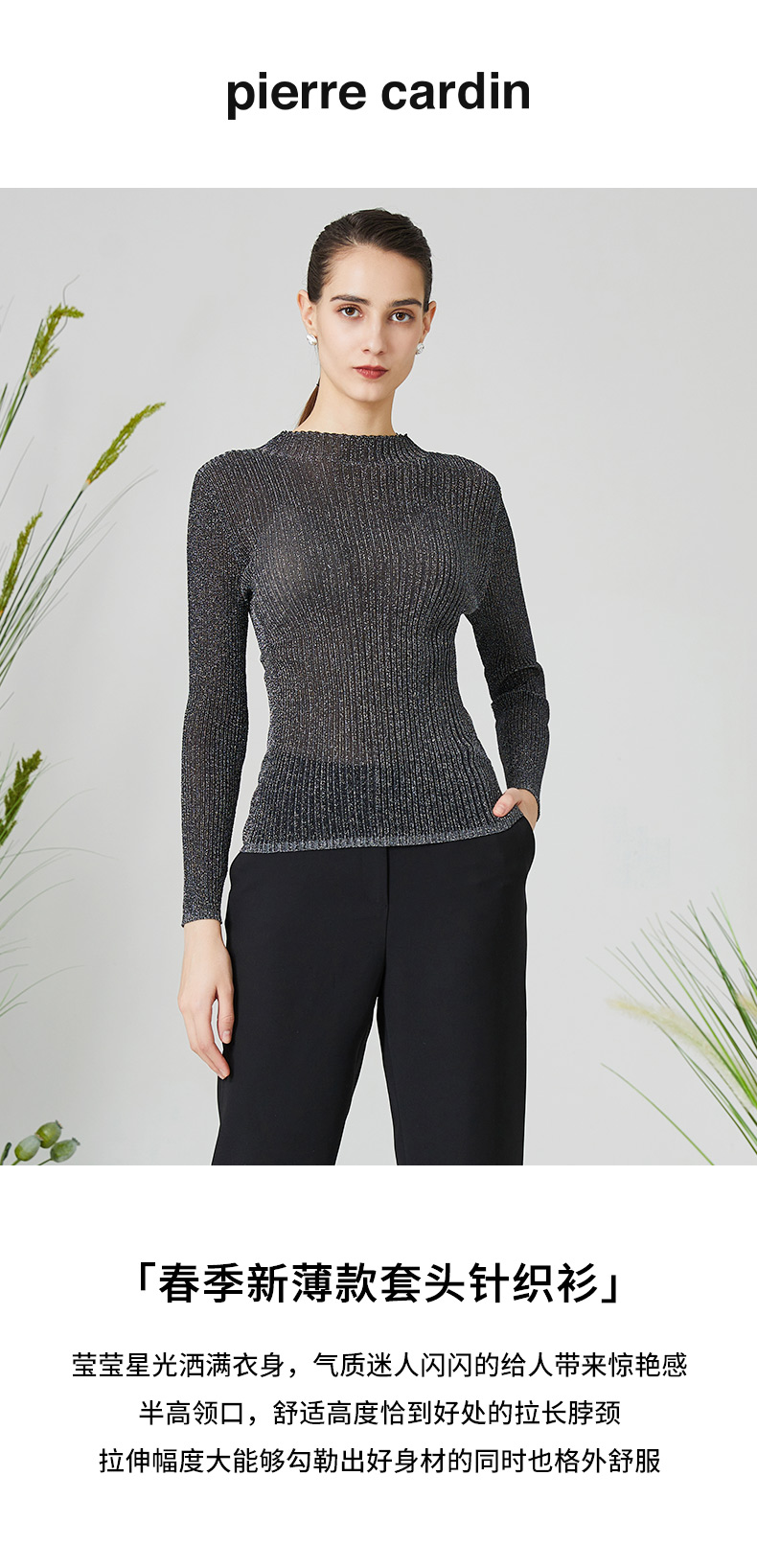 皮尔卡丹女装时尚亮丝修身通勤半高领套头针织衫P3199K3101H0