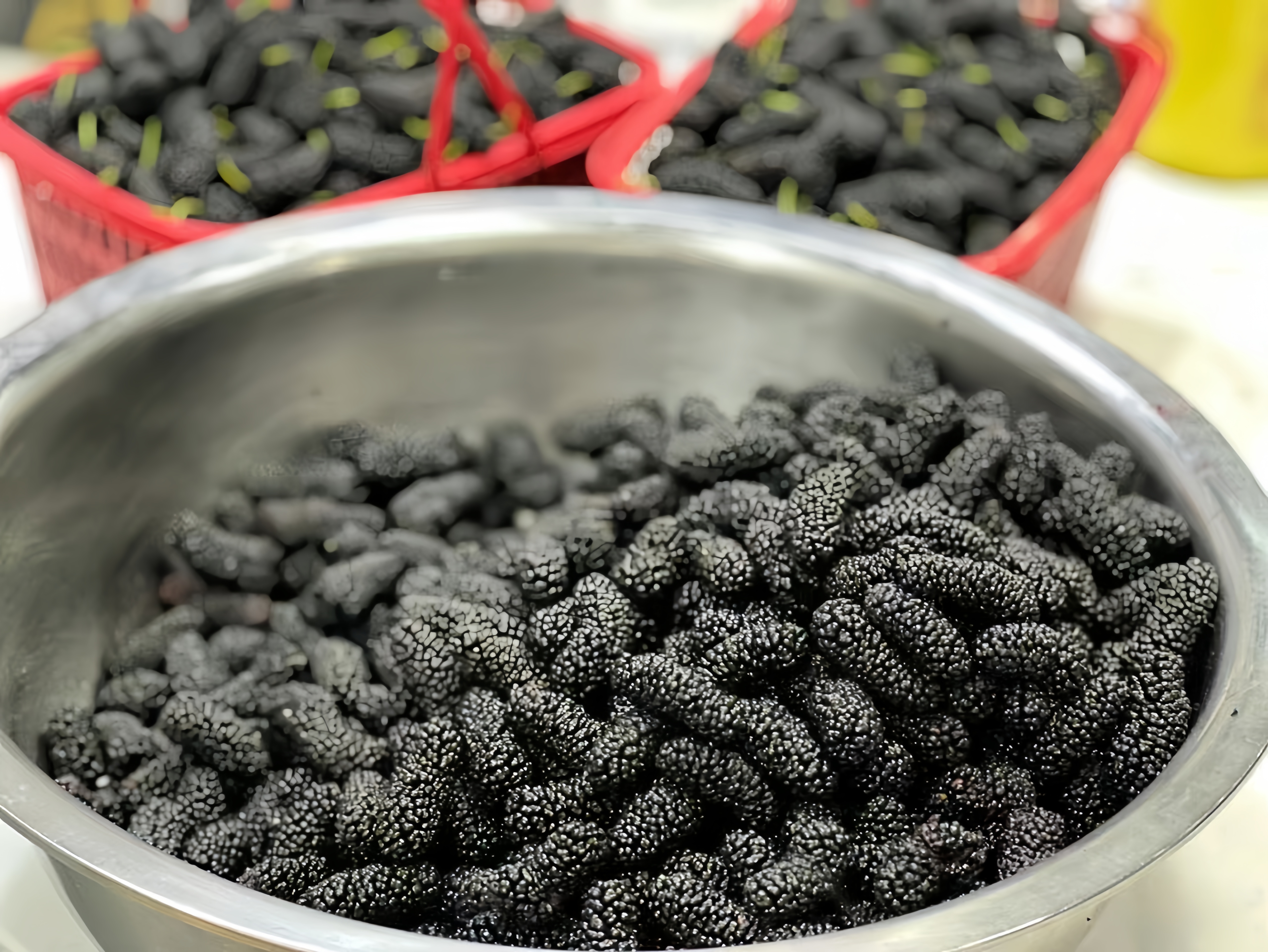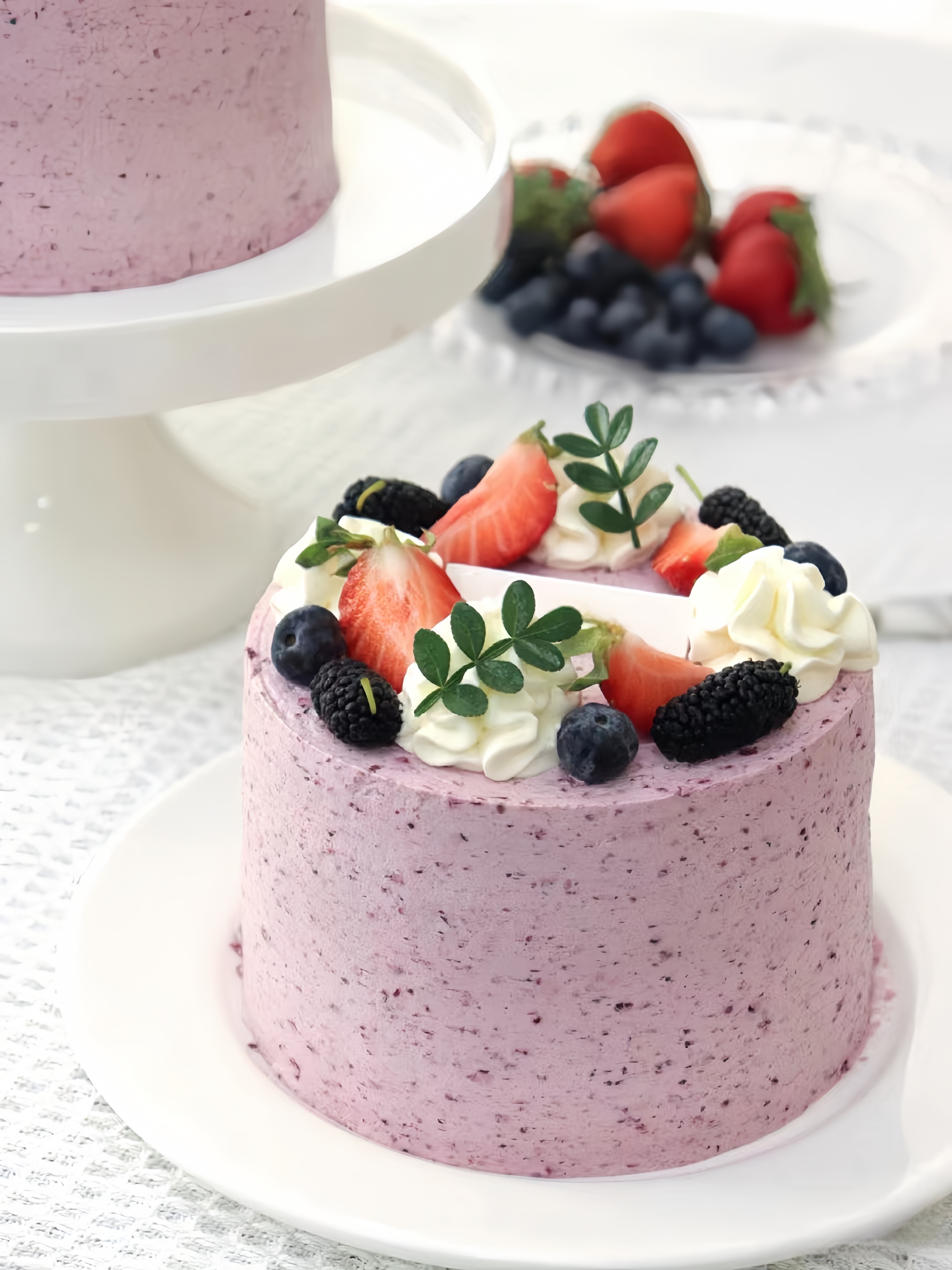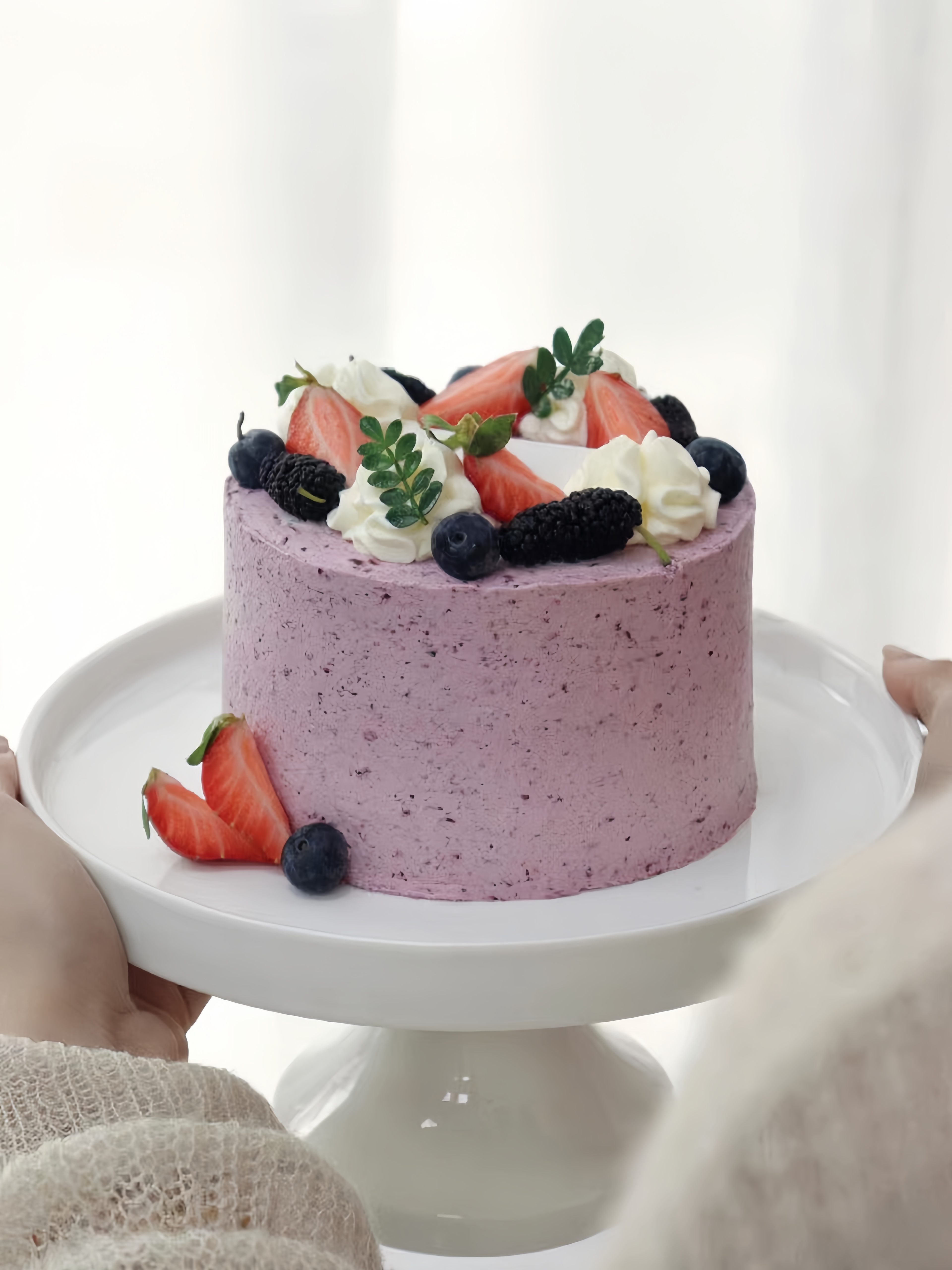 「食材」100%法国/新西兰动物奶油,轻乳酪戚风蛋糕,自制桑葚果蓉,新鲜桑葚,自制草莓果蓉。