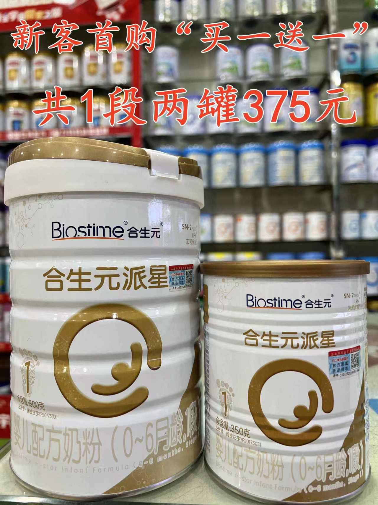 合生元派星新国标奶粉首购"买一送一”,购700克一罐赠送350克一罐,现买现送,即700克+350克,一组两罐375元