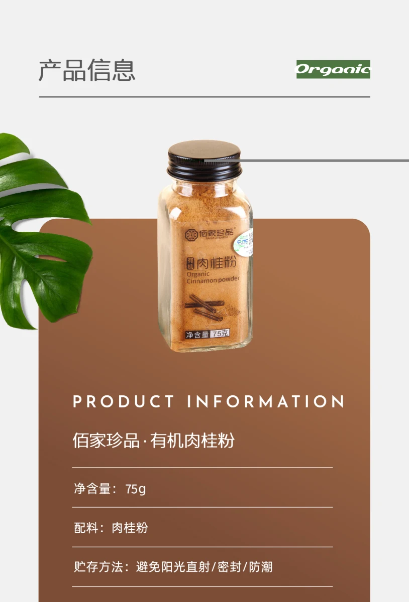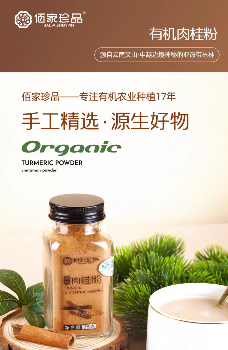 丨有机丨肉桂粉 云南文山深山无污染原生态桂皮制作,通过多国有机认证 佰家珍品