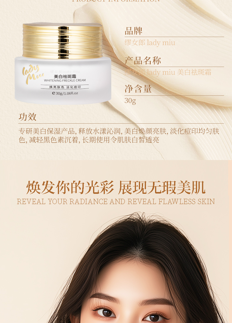 (新品限时优惠)广州药妆缪女郎lady miu正品美白祛斑霜淡痘印焕亮肤色