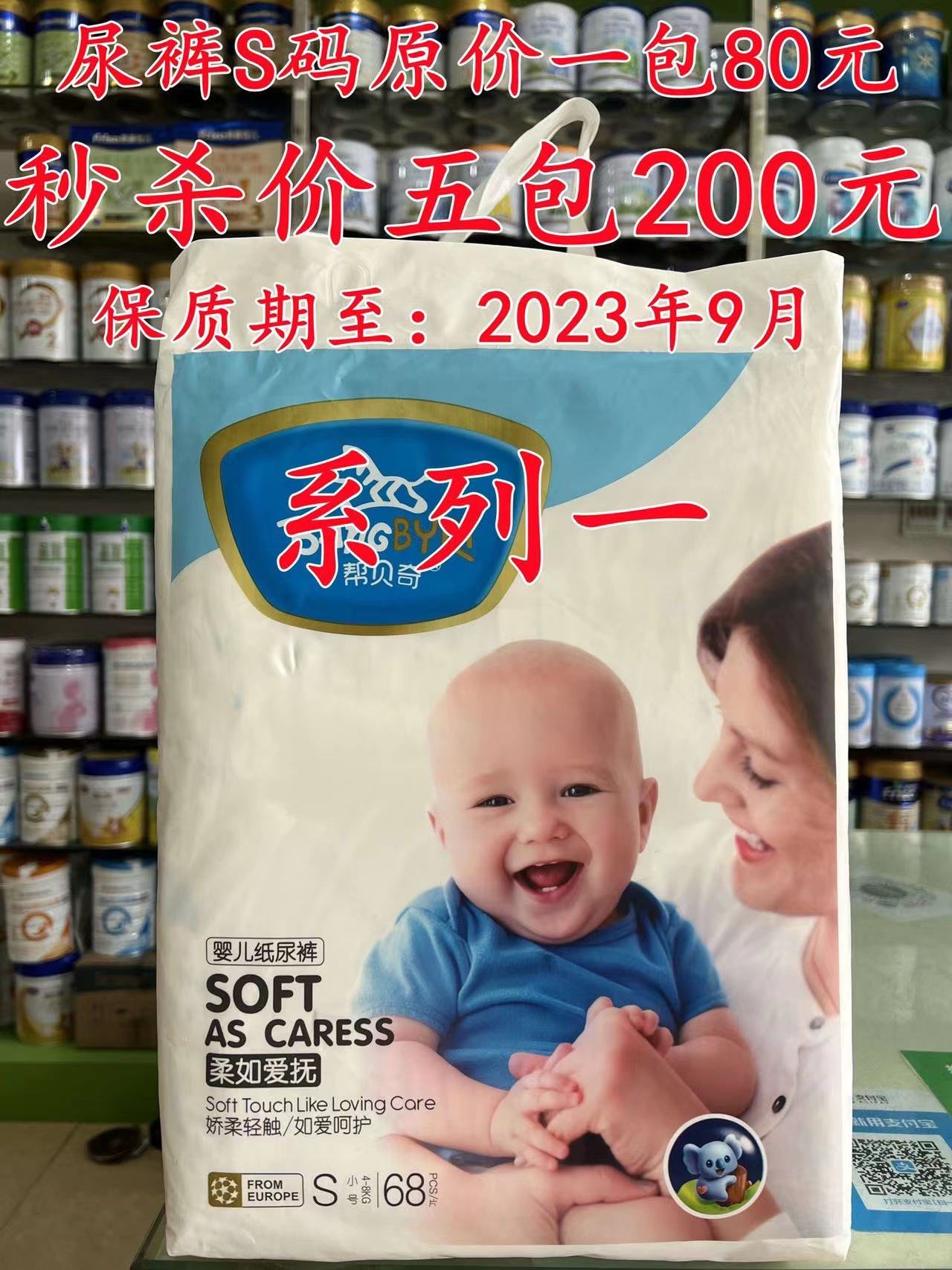 🌹系列一:帮贝奇纸尿裤S码原价一包80元,现秒杀价五包200元(折实一包40元);