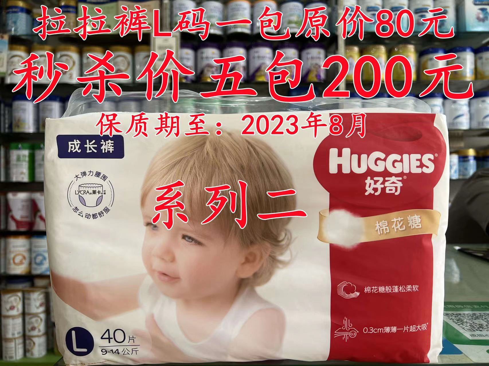 🌹系列二:好奇拉拉裤L码一包原价80元,现秒杀价五包200元(折实一包40元);