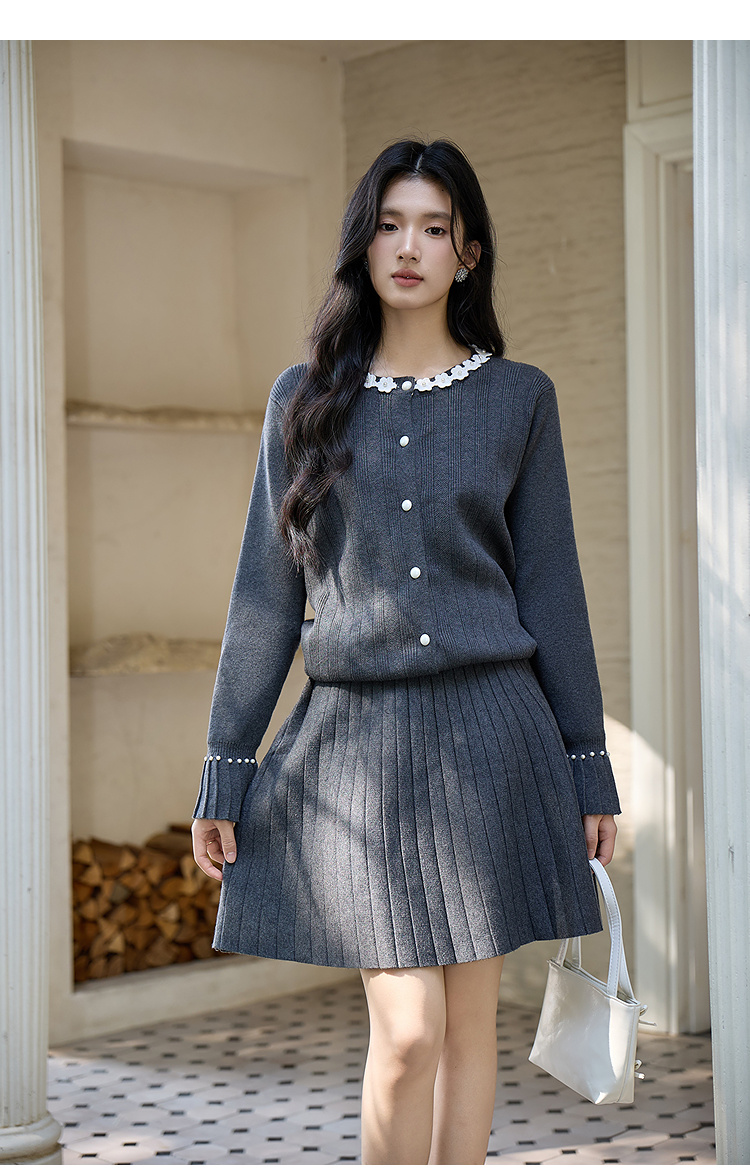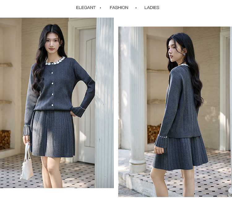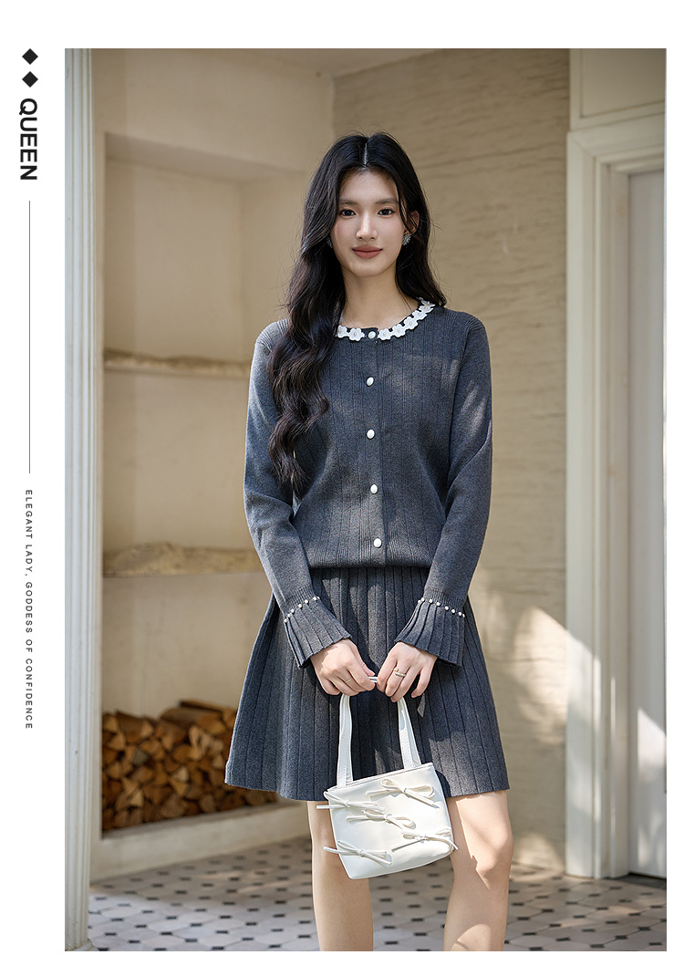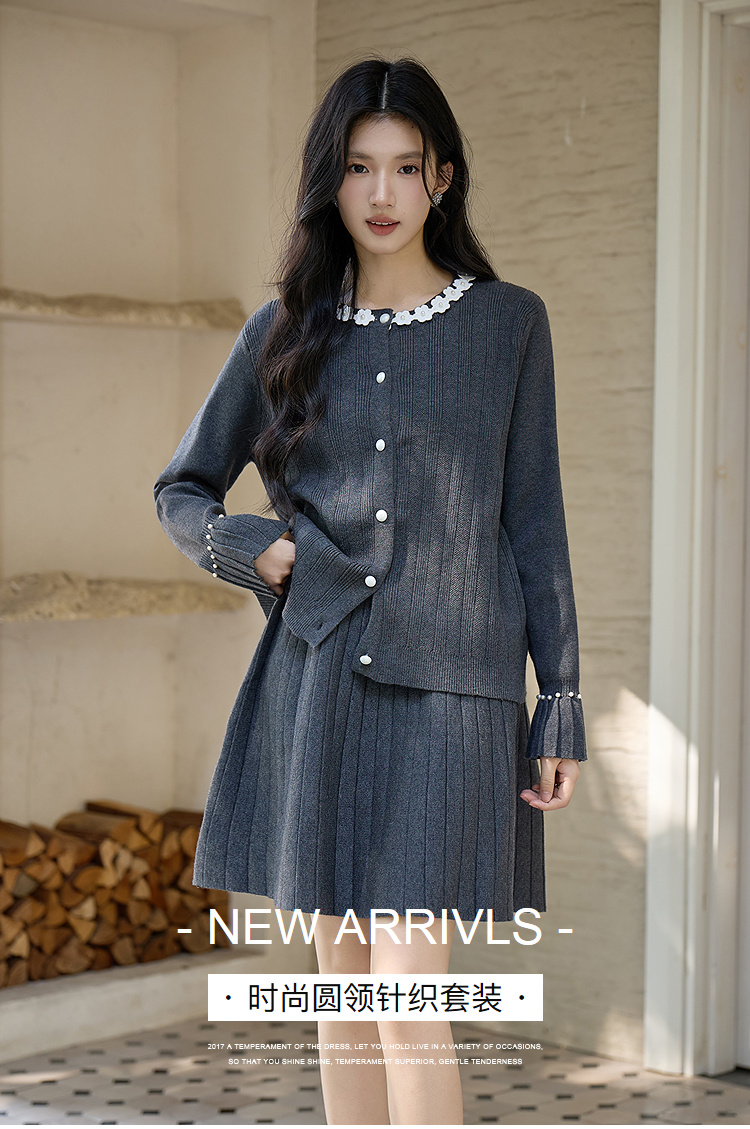 奢姿大码女装2025冬季时尚花朵装饰针织套装胖妹妹气质减龄两件套
