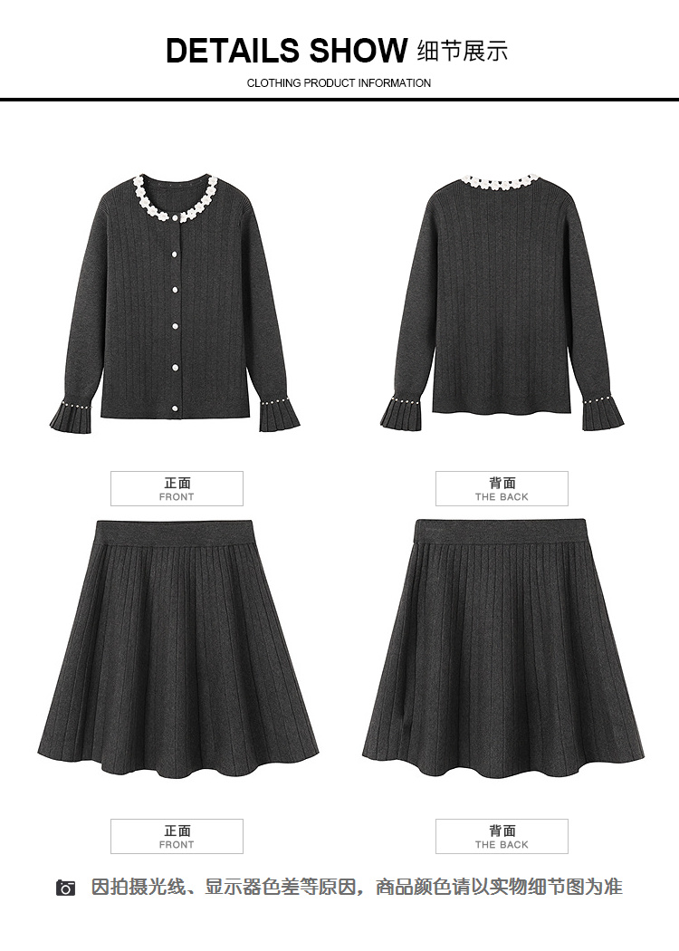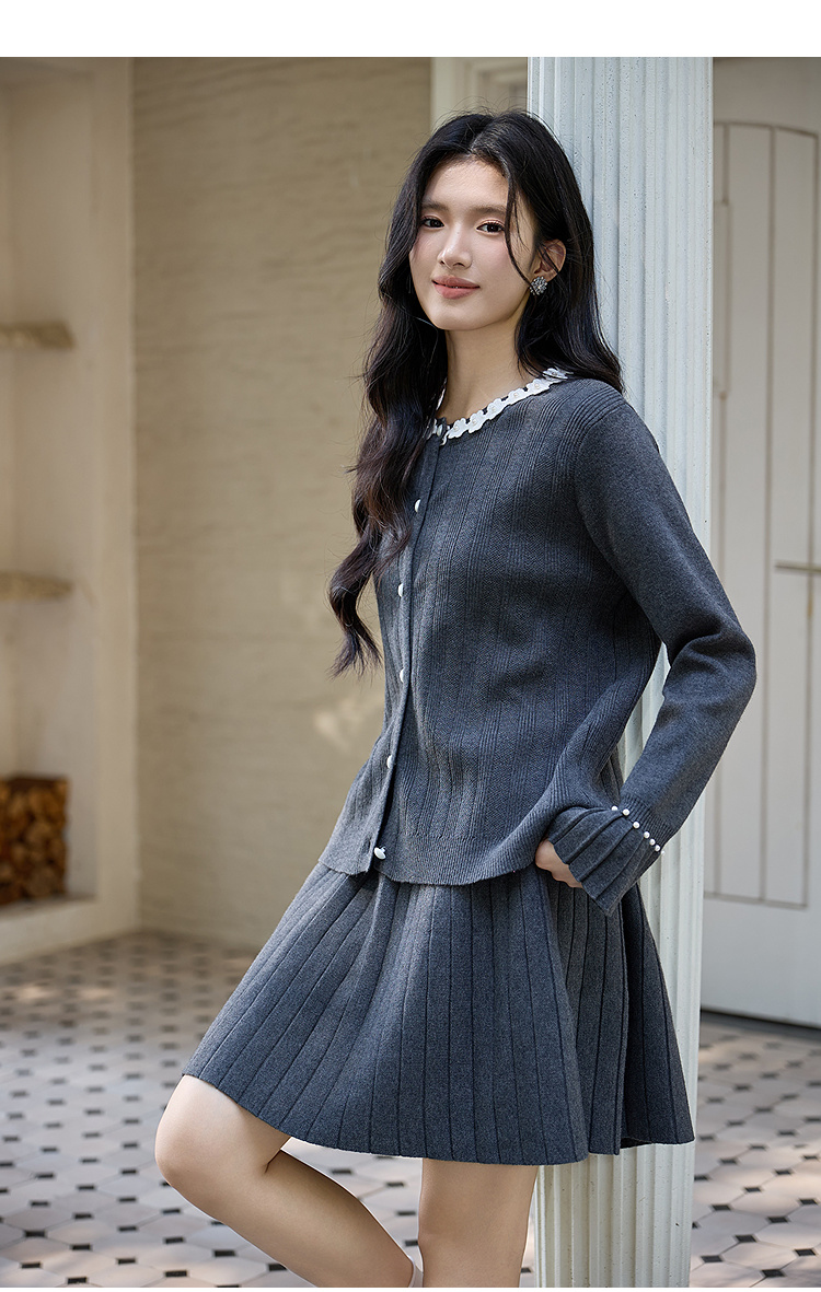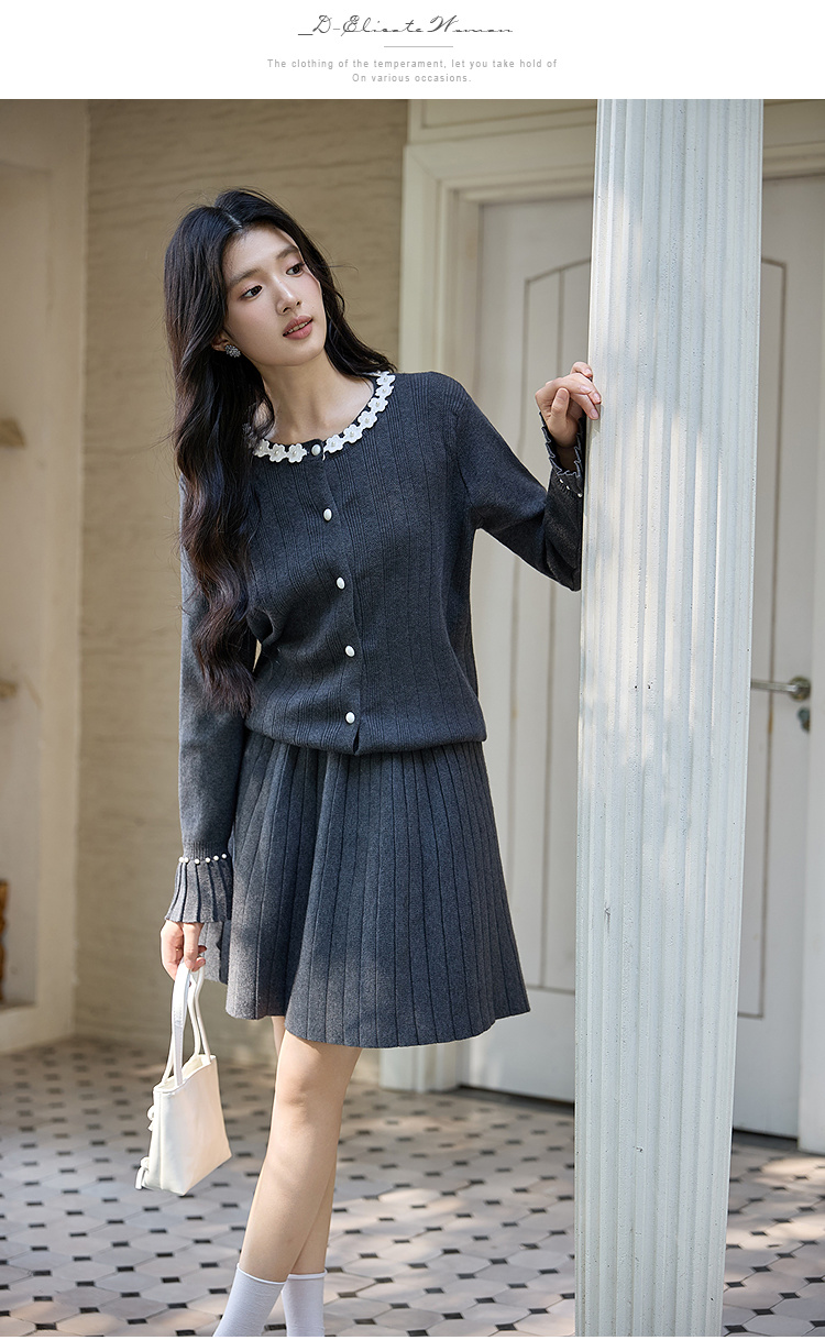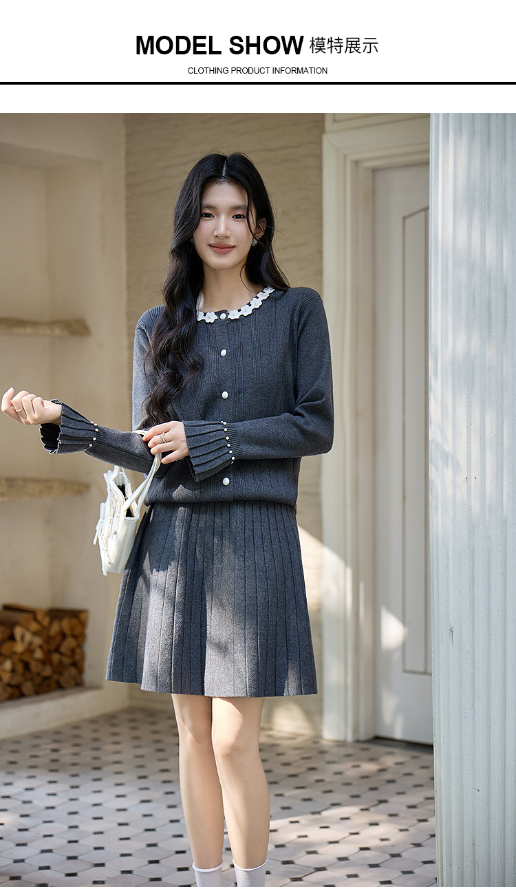 奢姿大码女装2025冬季时尚花朵装饰针织套装胖妹妹气质减龄两件套