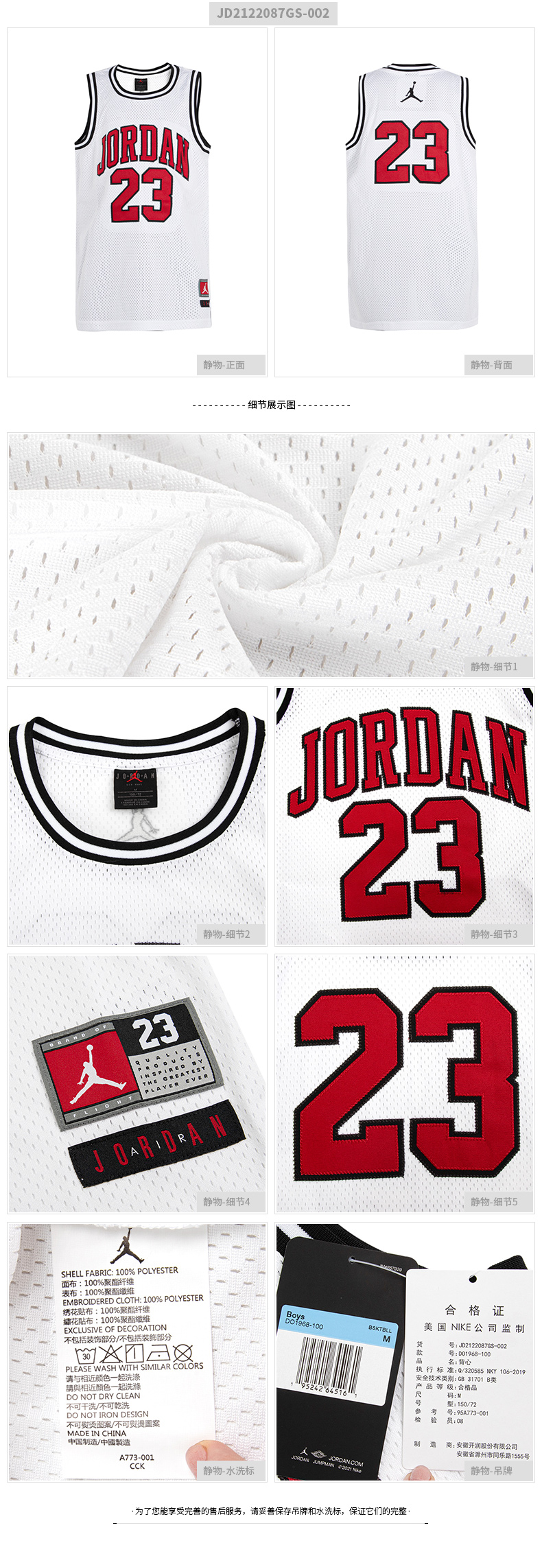耐克-童衣类(夏)儿童背心款运动服篮球T恤白色无袖短袖JD2122087