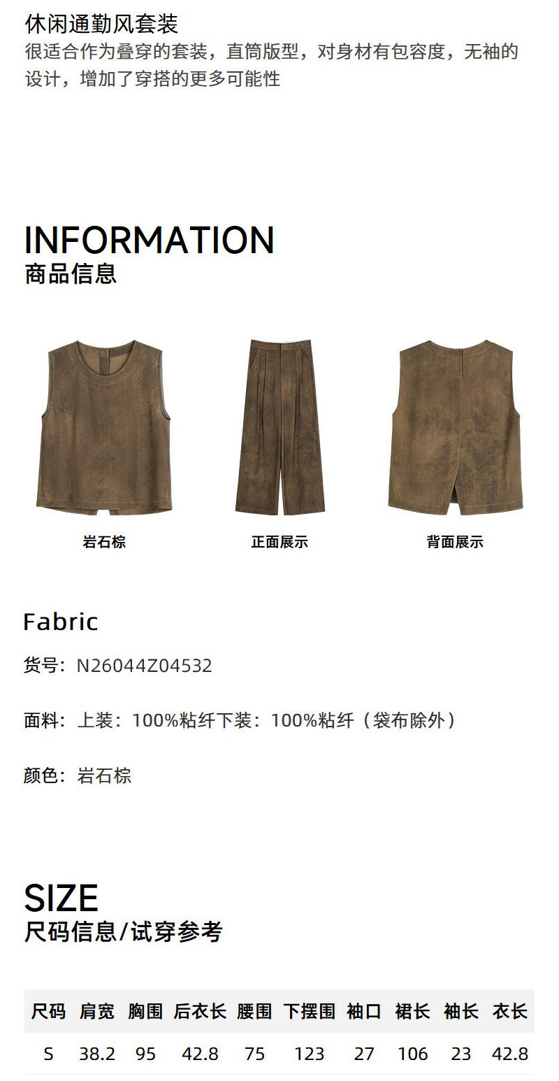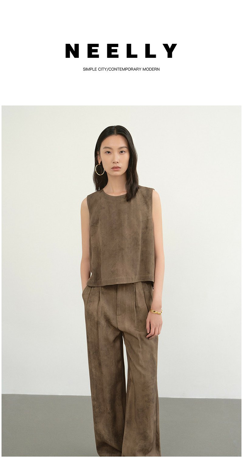 NEELLY纳俪商场同款夏季新款休闲通勤套装女新中式直筒马甲两件套N26044Z04532