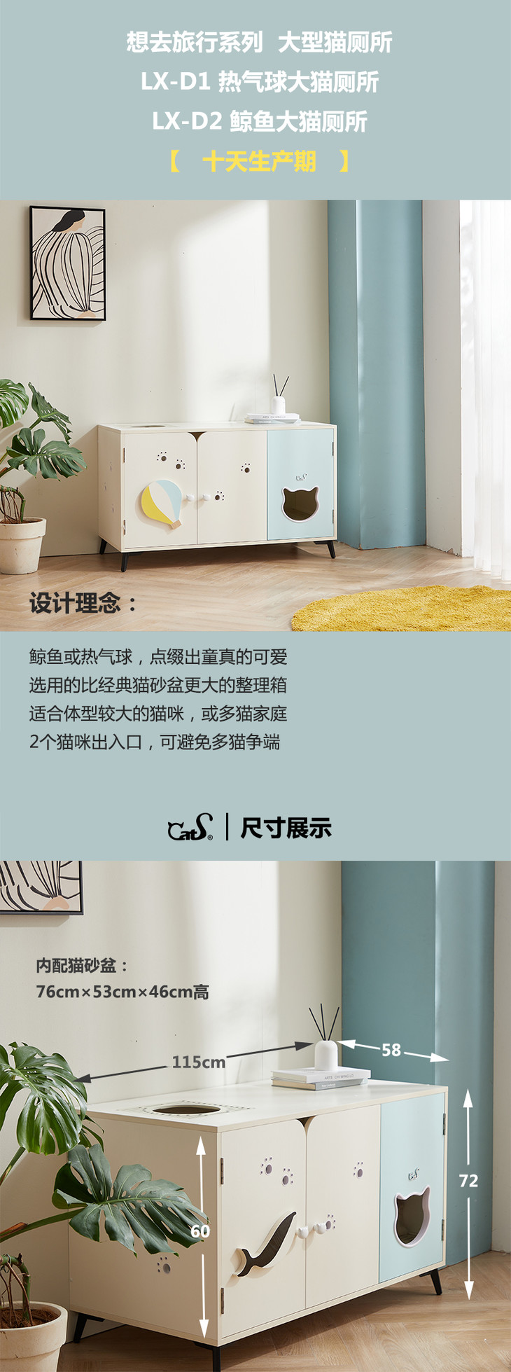 CatS猫家具大型猫厕所 旅行系列 除臭全封闭多出入口猫砂盆