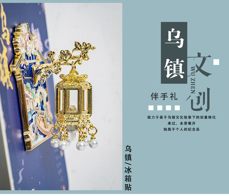 【乌镇官方】景区纪念品伴手礼江南水乡金属灯笼立体冰箱贴