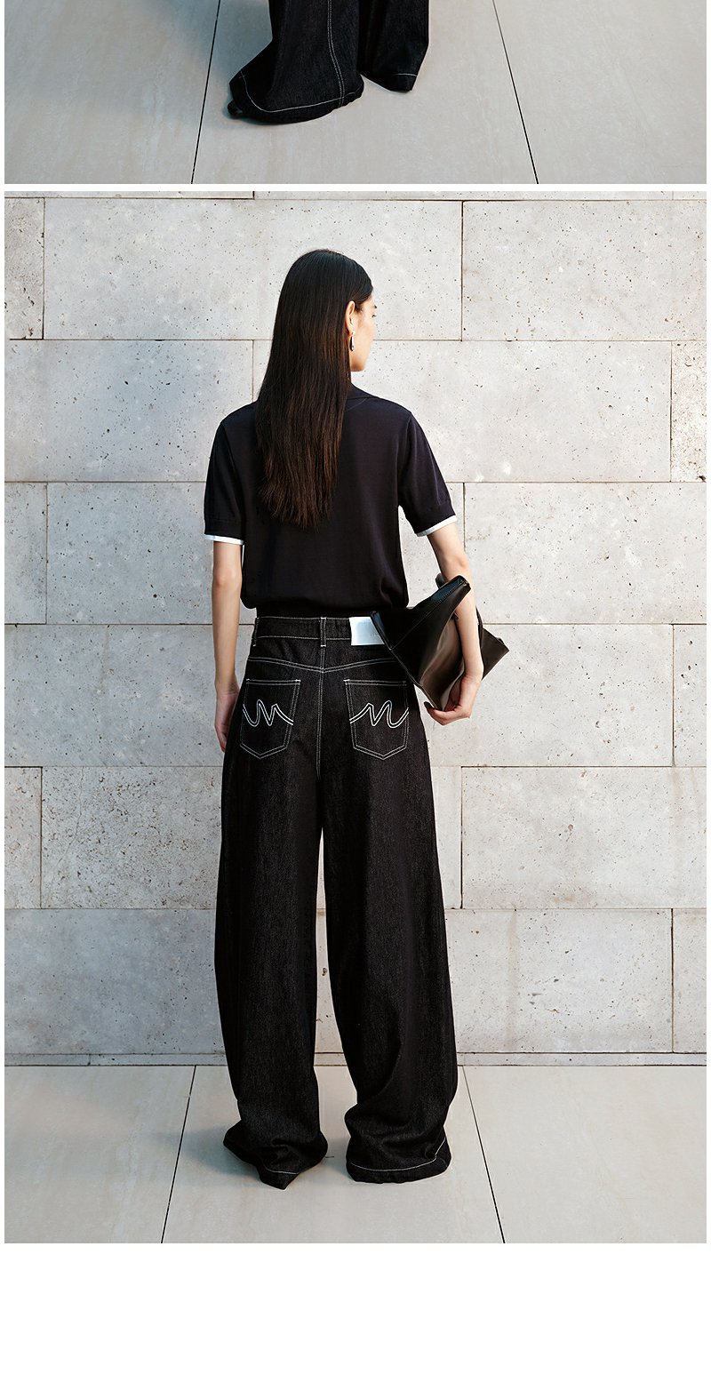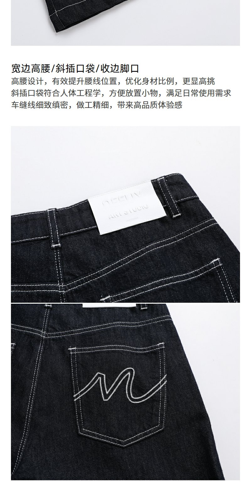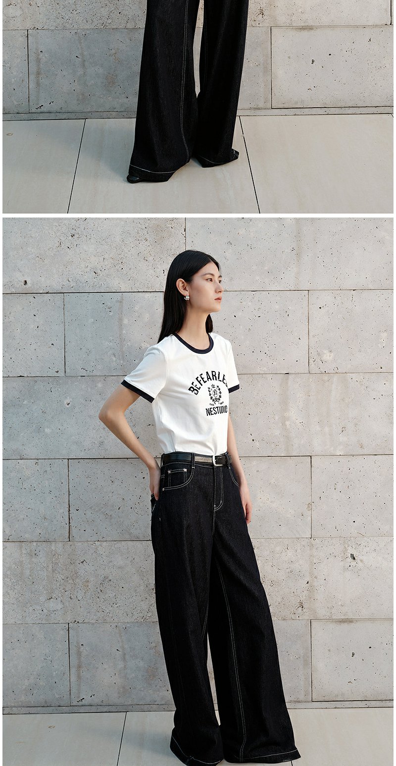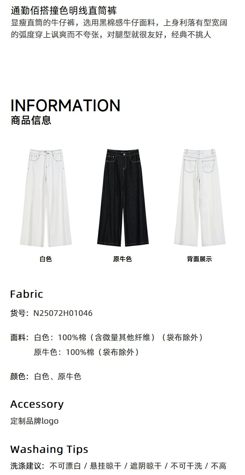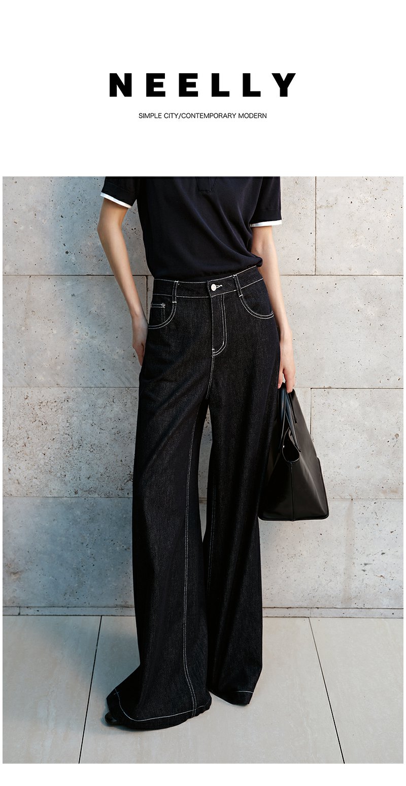 NEELLY纳俪商场同款秋季新款通勤百搭牛仔裤女撞色明线休闲直筒裤N25072H01046