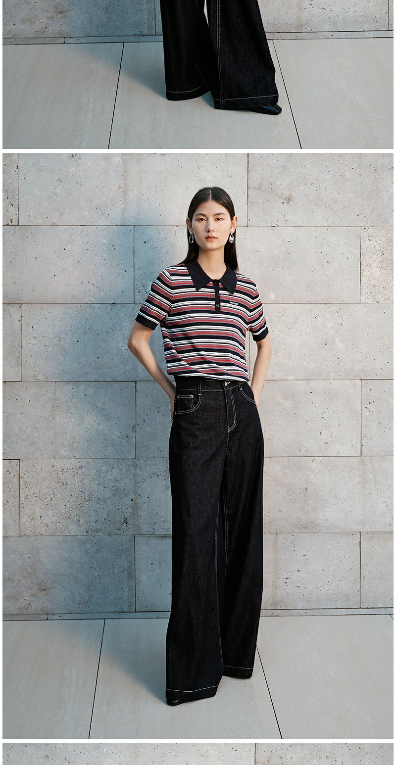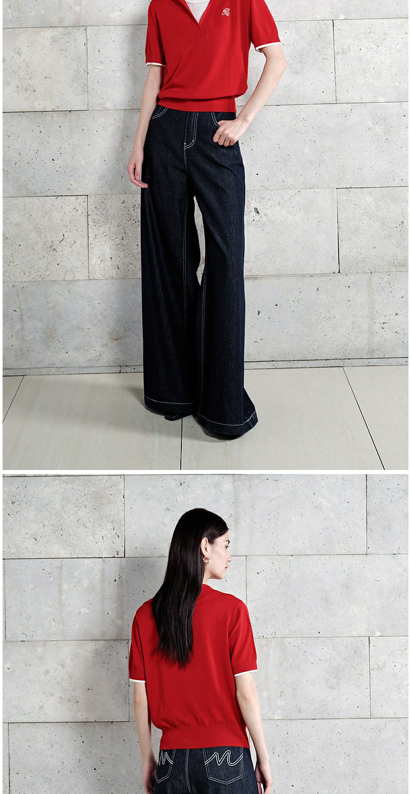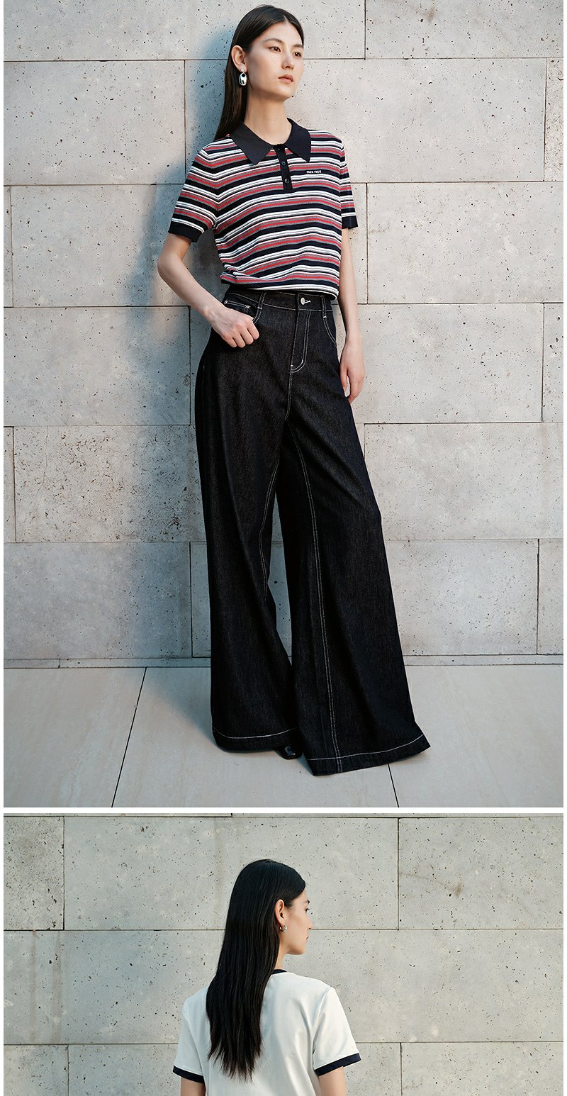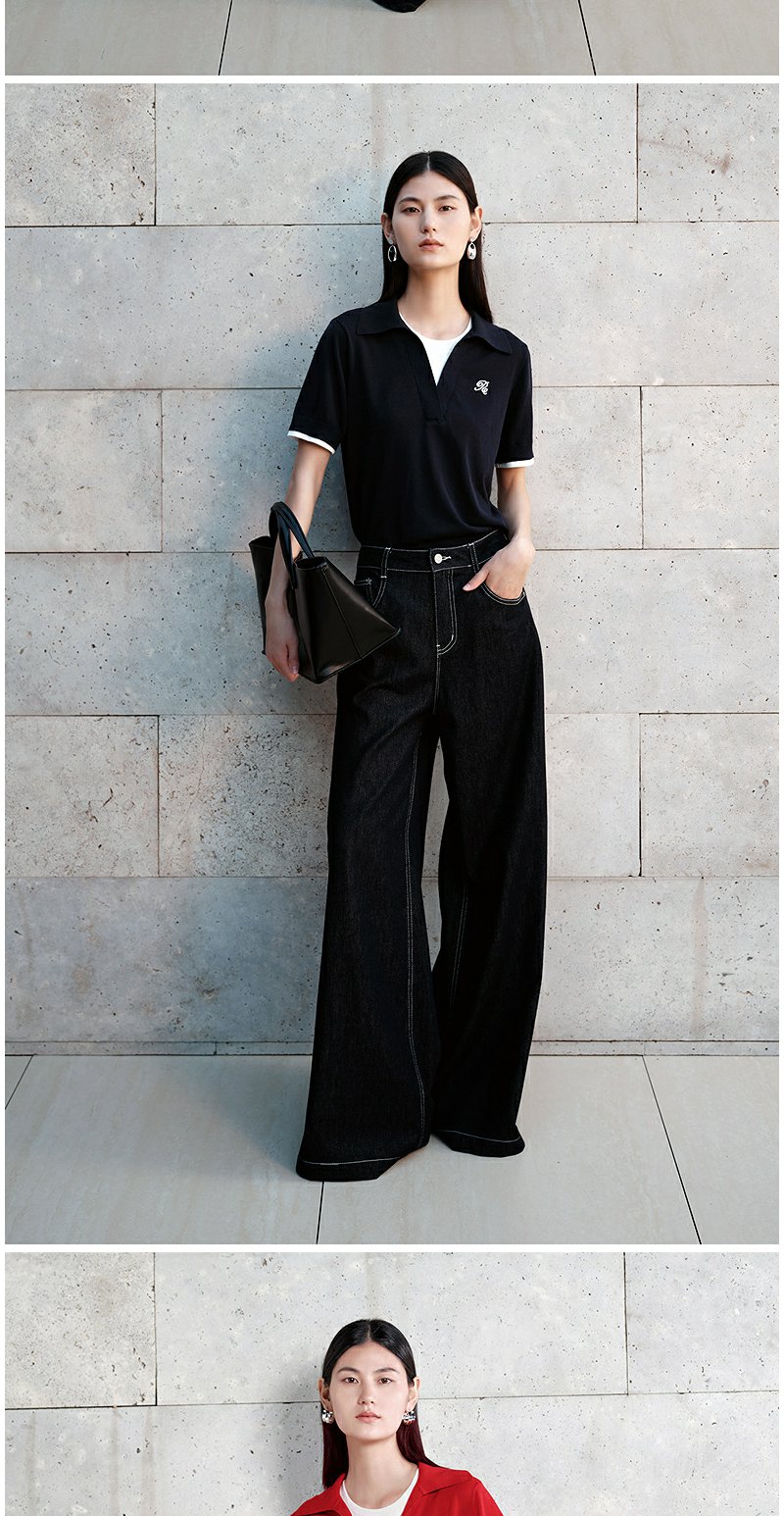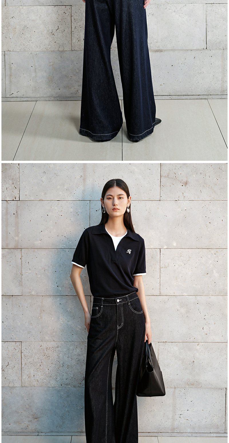 NEELLY纳俪商场同款秋季新款通勤百搭牛仔裤女撞色明线休闲直筒裤N25072H01046
