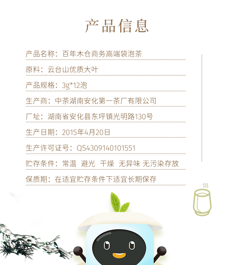 茯砖 黑茶 | 2015年百年木仓茯砖 高端商务袋泡茶12泡*3g(36g))
