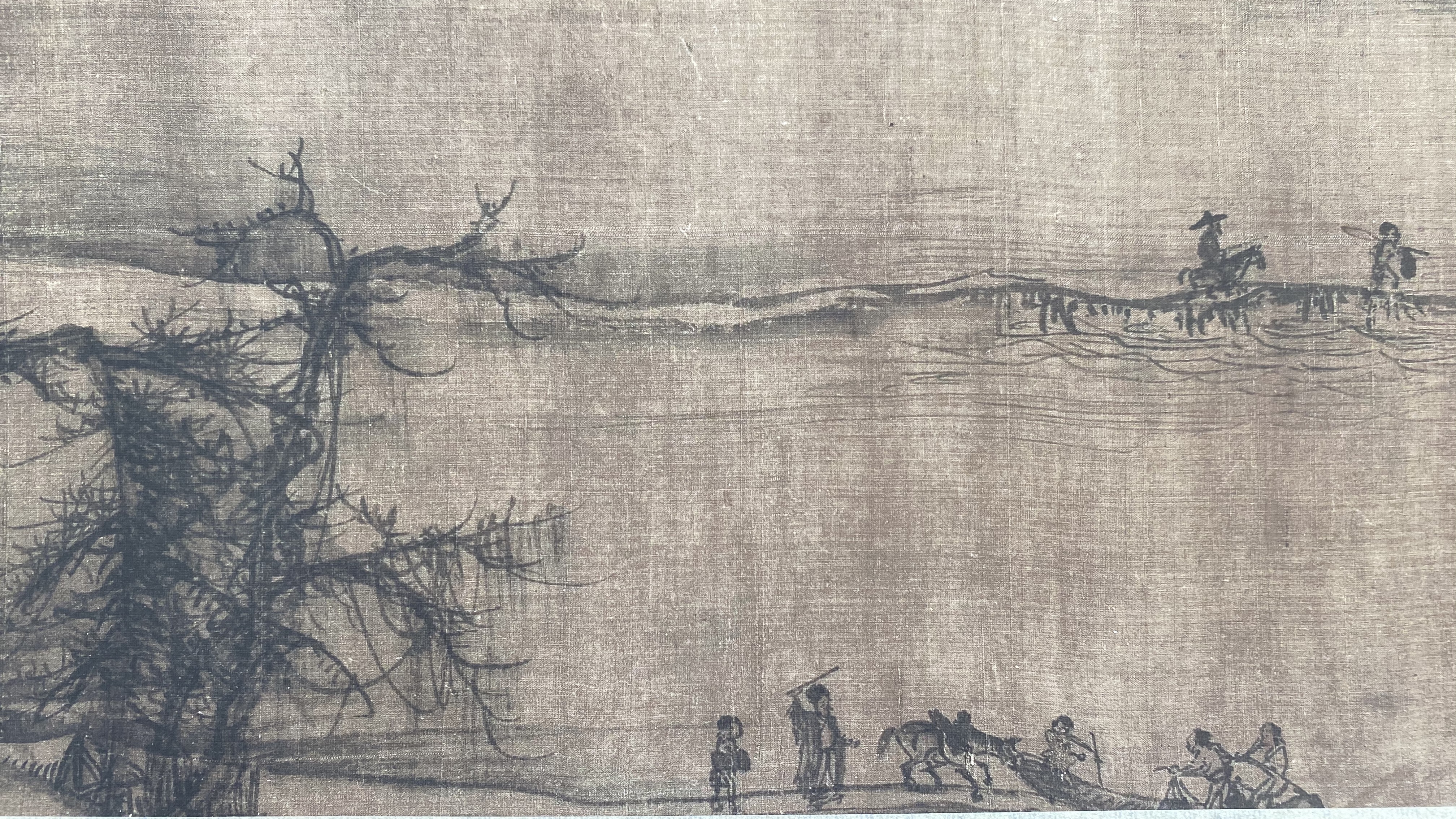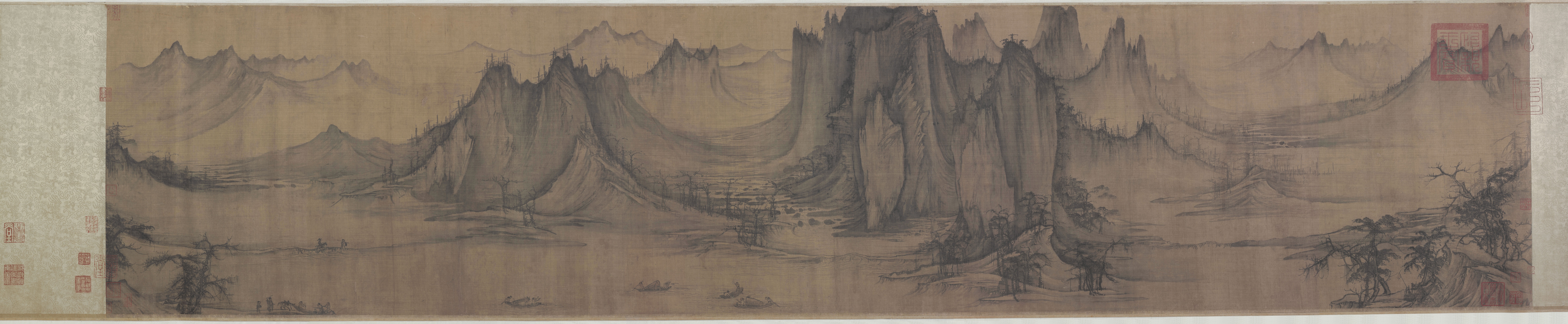 【定制书画】(北宋)许道宁《秋江渔艇图(高头渔父卷)》绢本 手卷 馆藏书画高仿复制艺术品(付款后28天内发货)