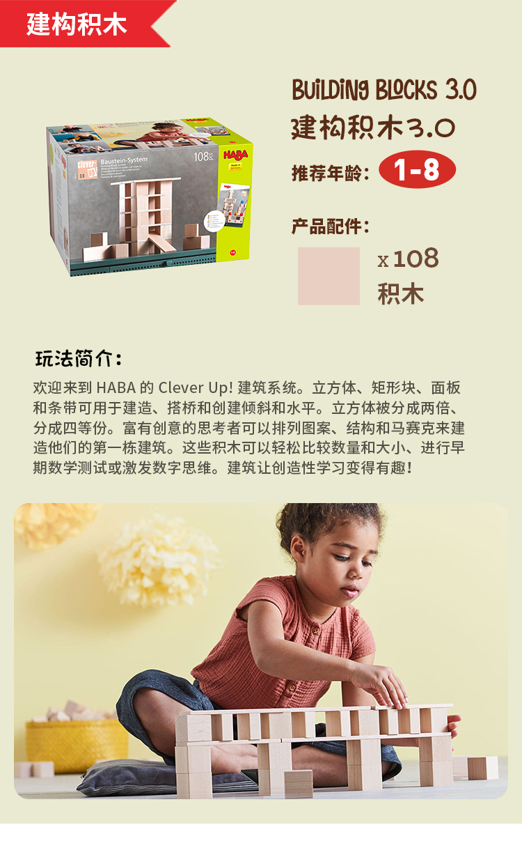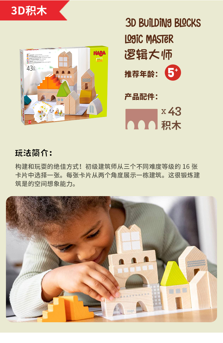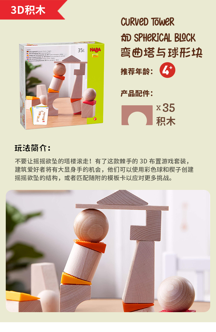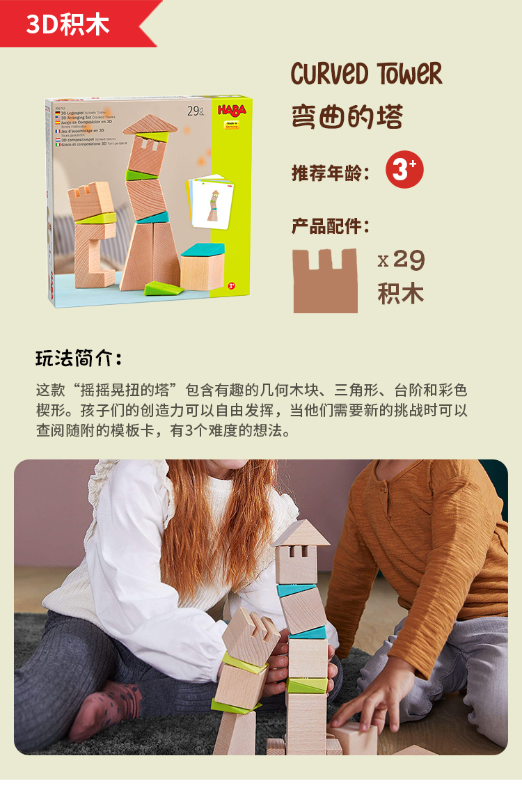 德国 HABA 积木 弯曲的塔 适合年龄3岁+ 306792