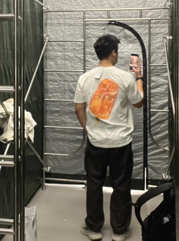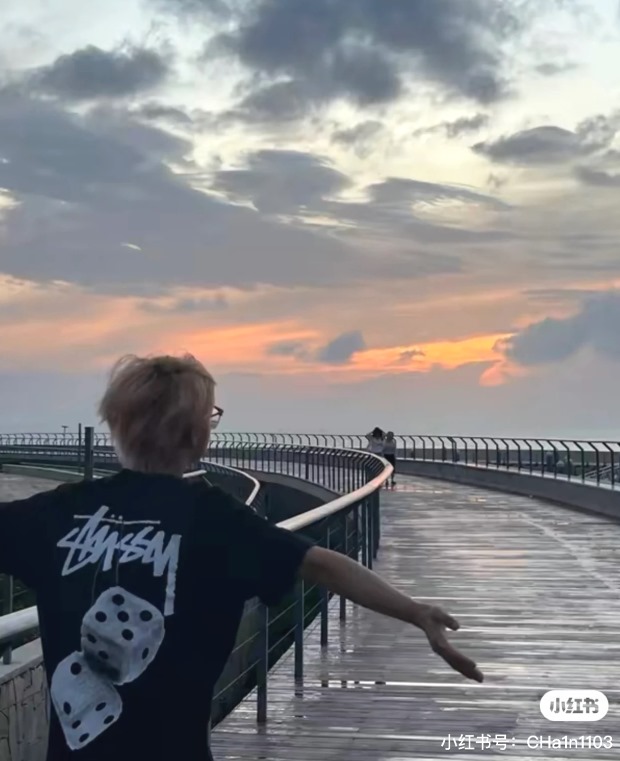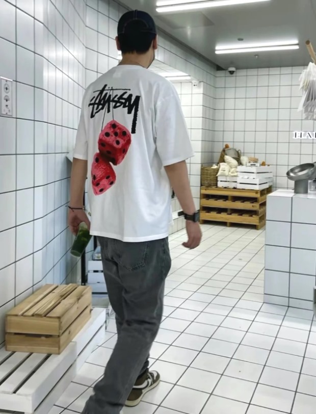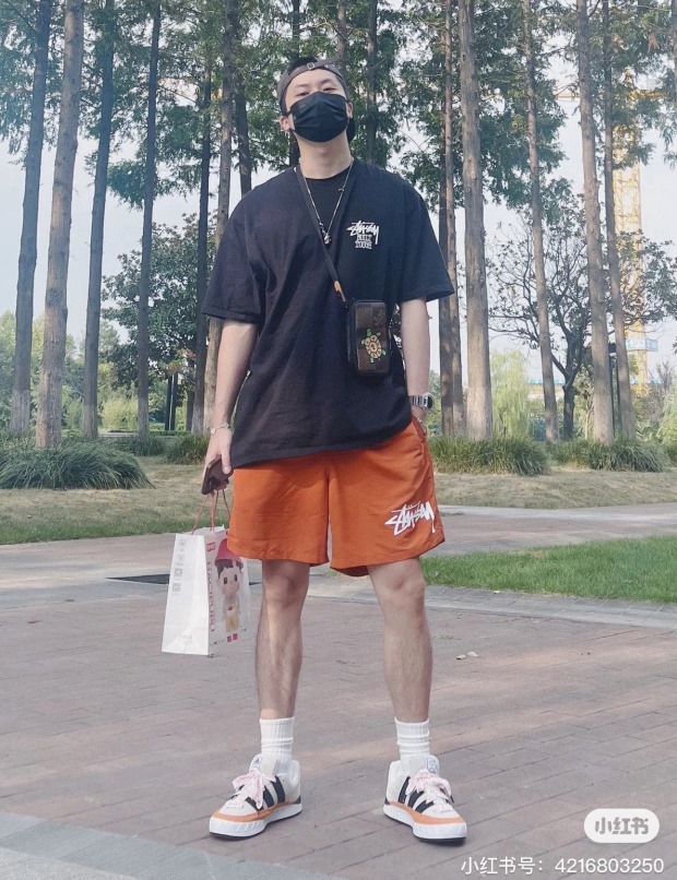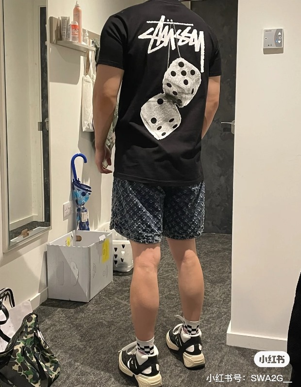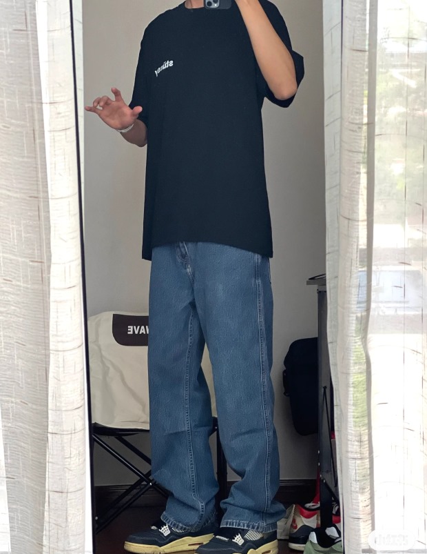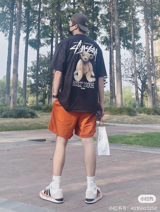 他穿L码 因码数间有明显跨度 宽松感一下就出来了 但谈不上廓