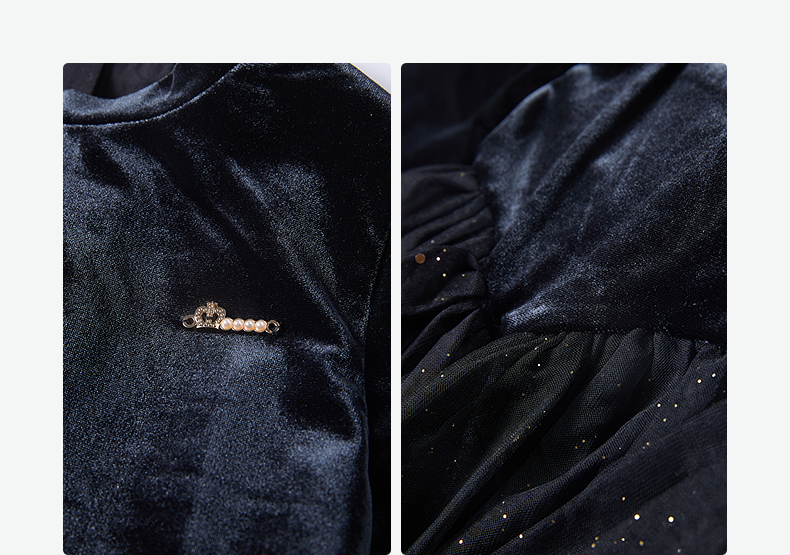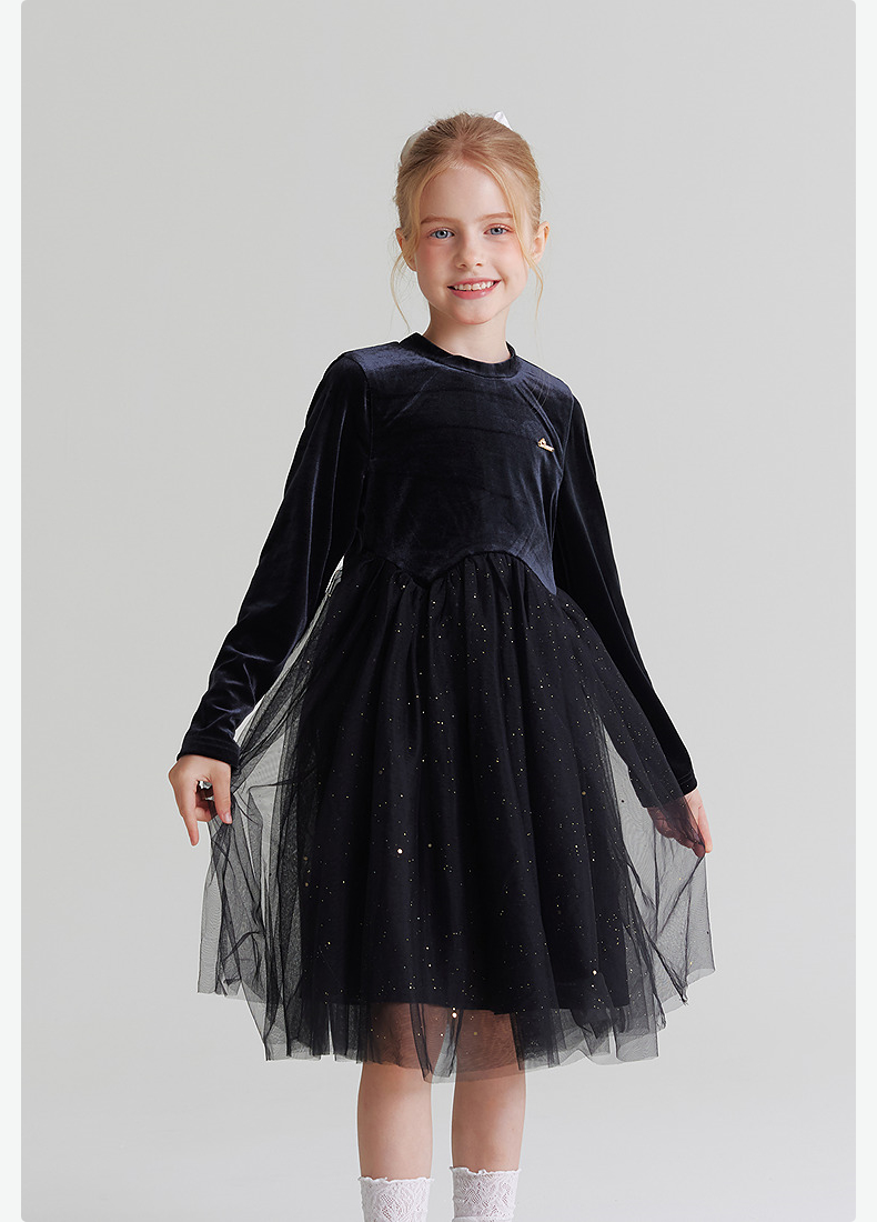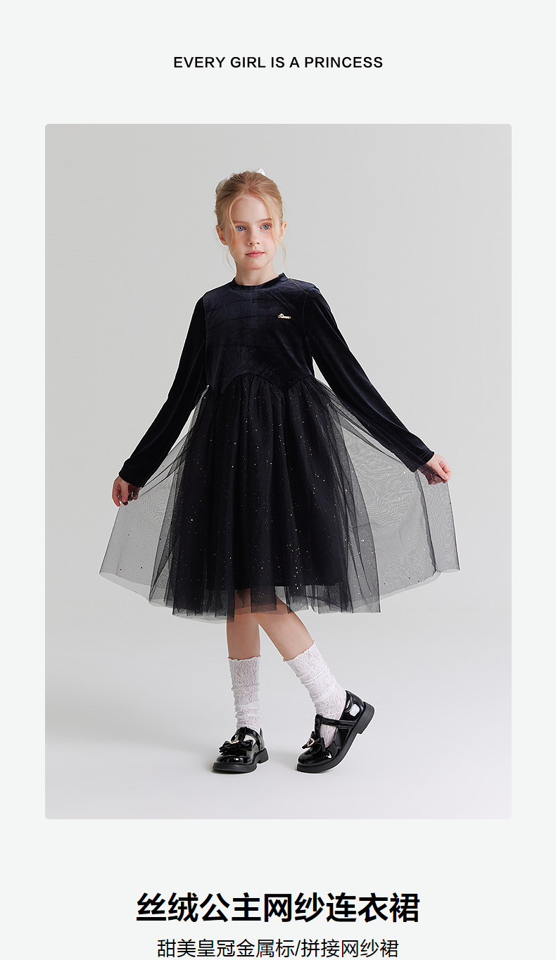 笛莎Deesha 童装女童连衣裙2025秋新款女童丝绒公主网纱连衣裙