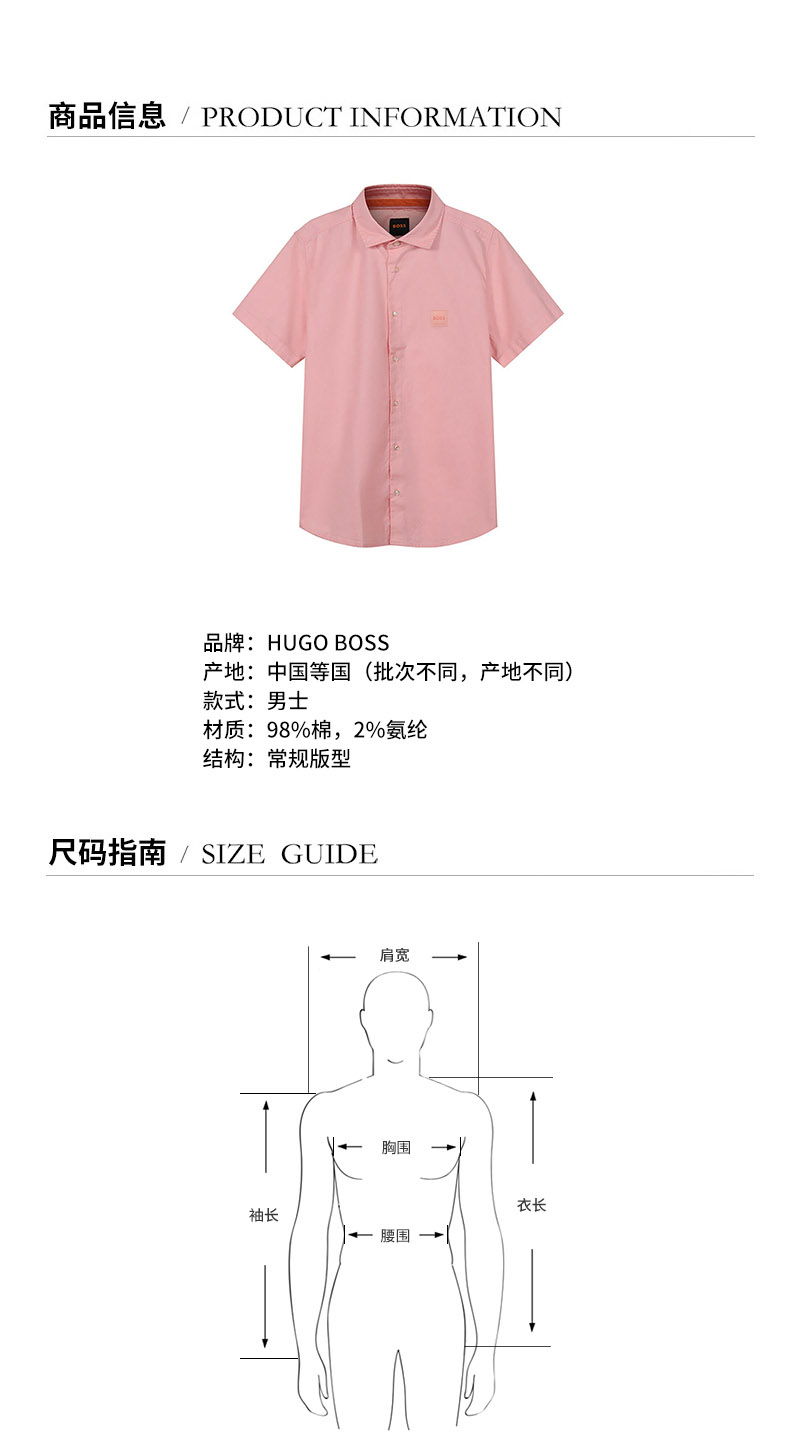 HUGO BOSS/雨果博斯【22春夏新款】男士棉质短袖衬衫 50468269