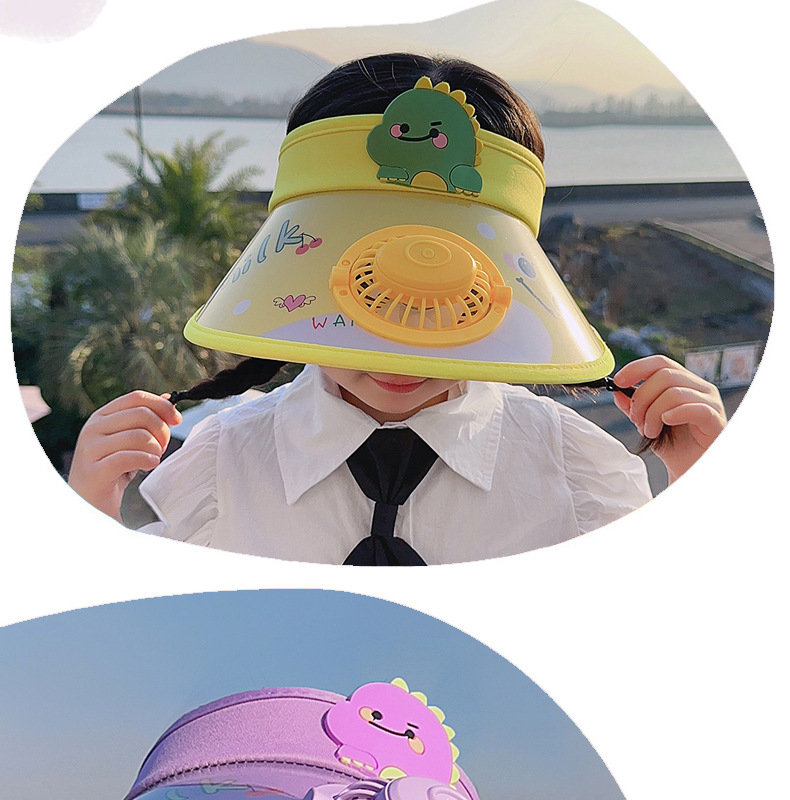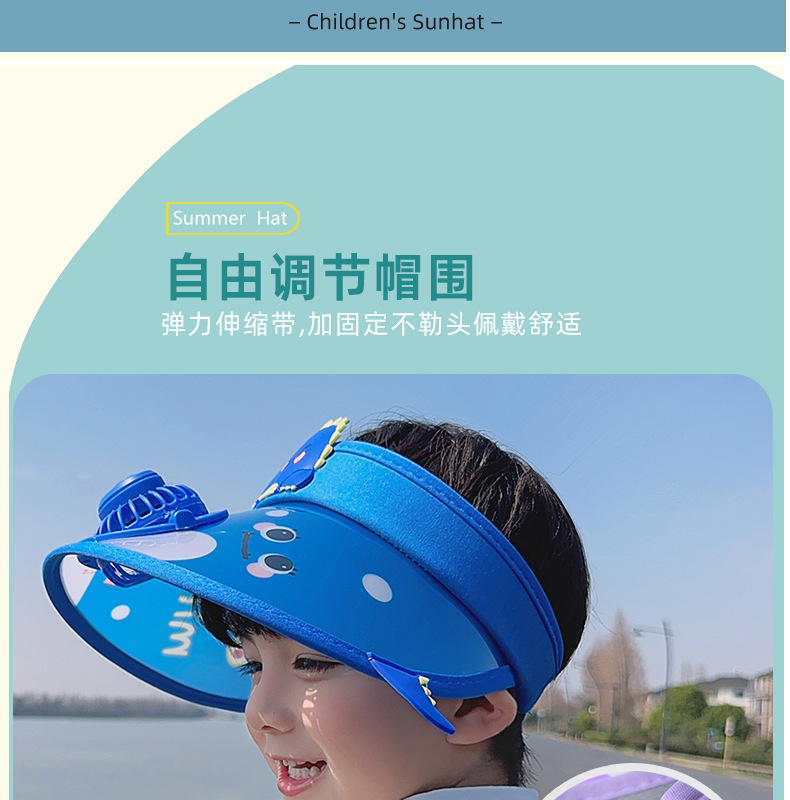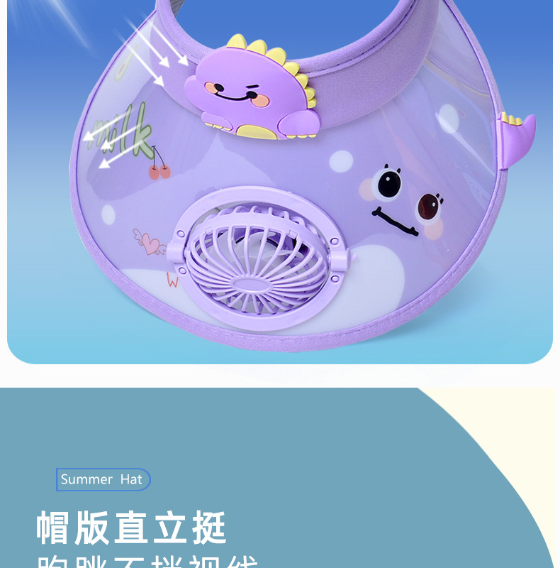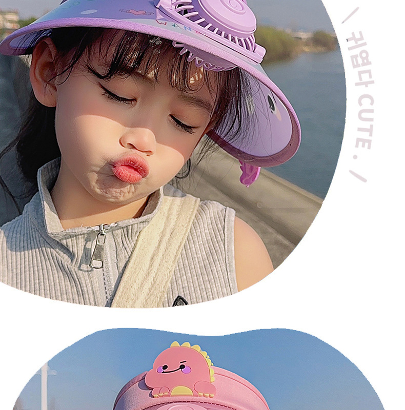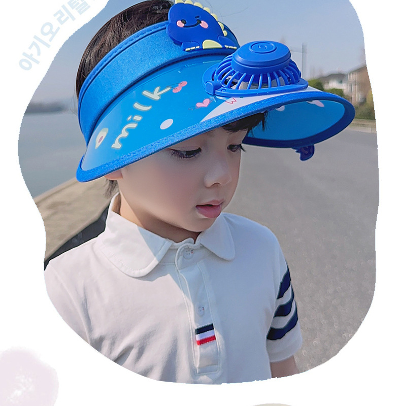 夏季儿童宝宝遮阳帽子充电大檐风扇空顶帽卡通恐龙太阳帽户外遮阳
