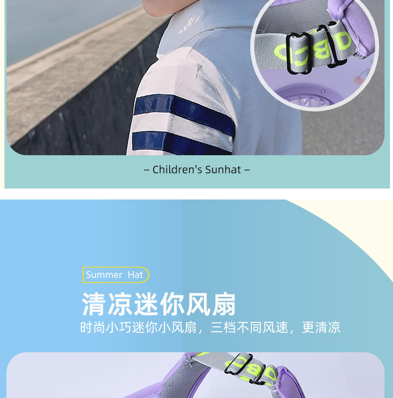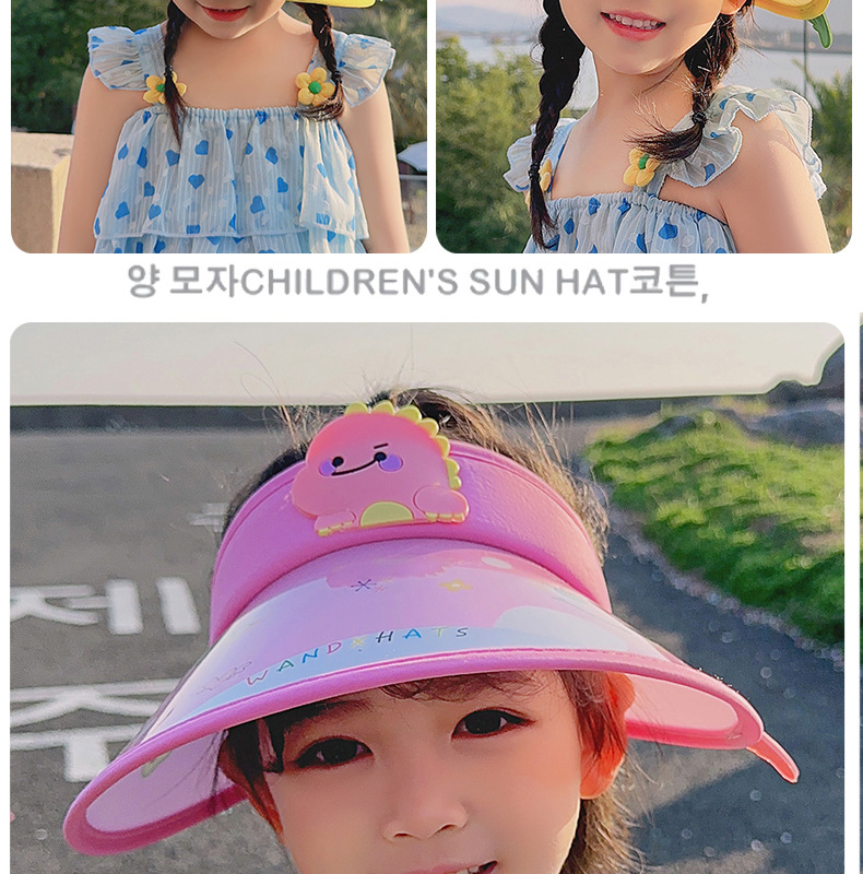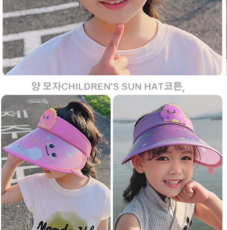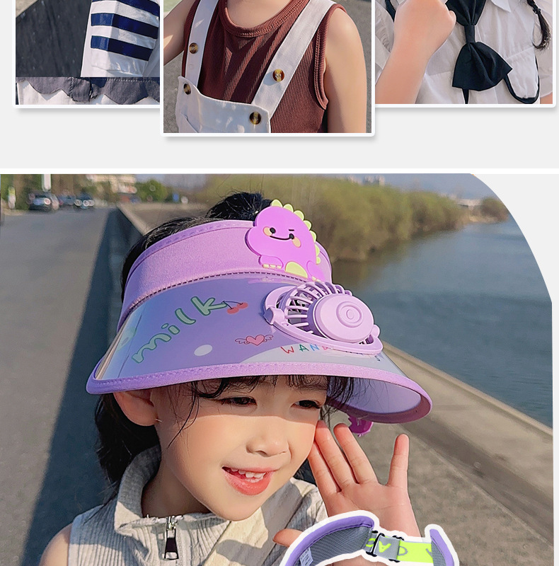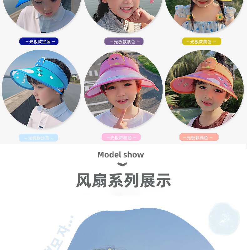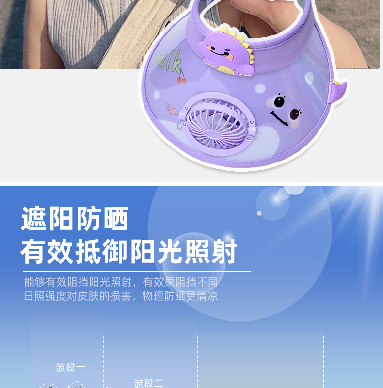夏季儿童宝宝遮阳帽子充电大檐风扇空顶帽卡通恐龙太阳帽户外遮阳