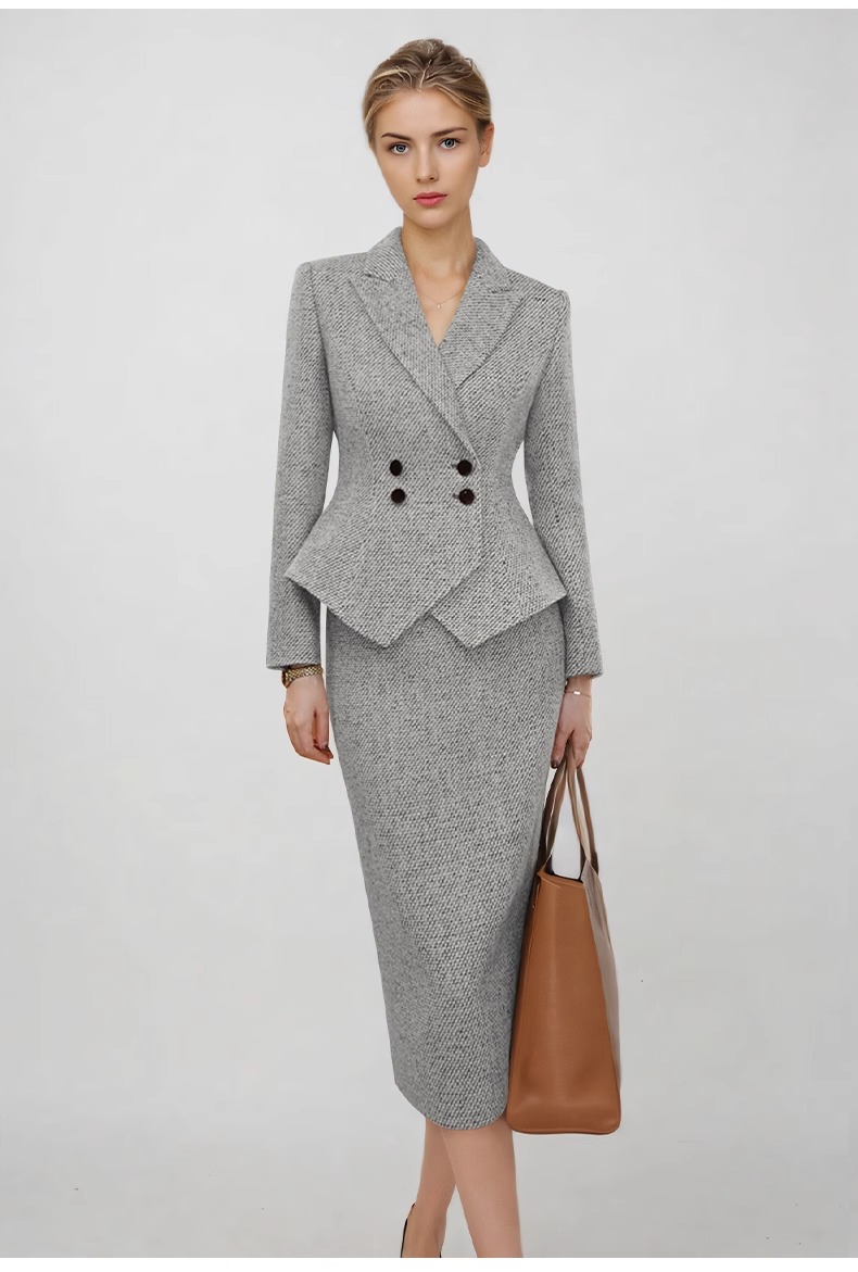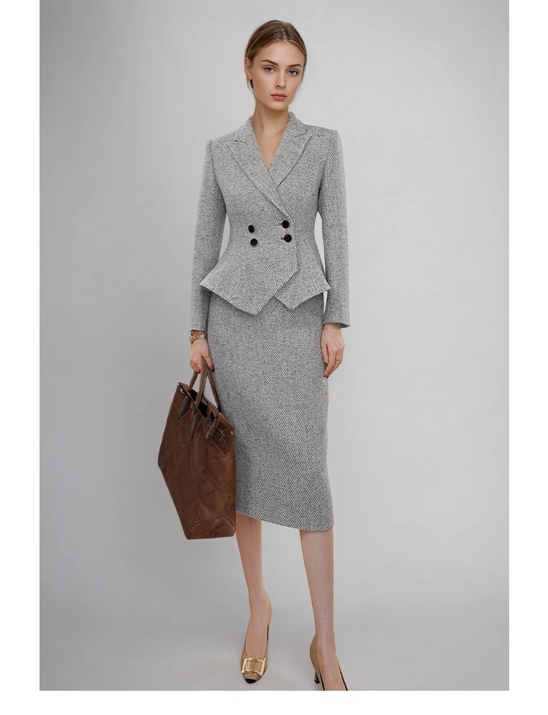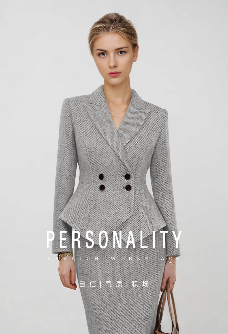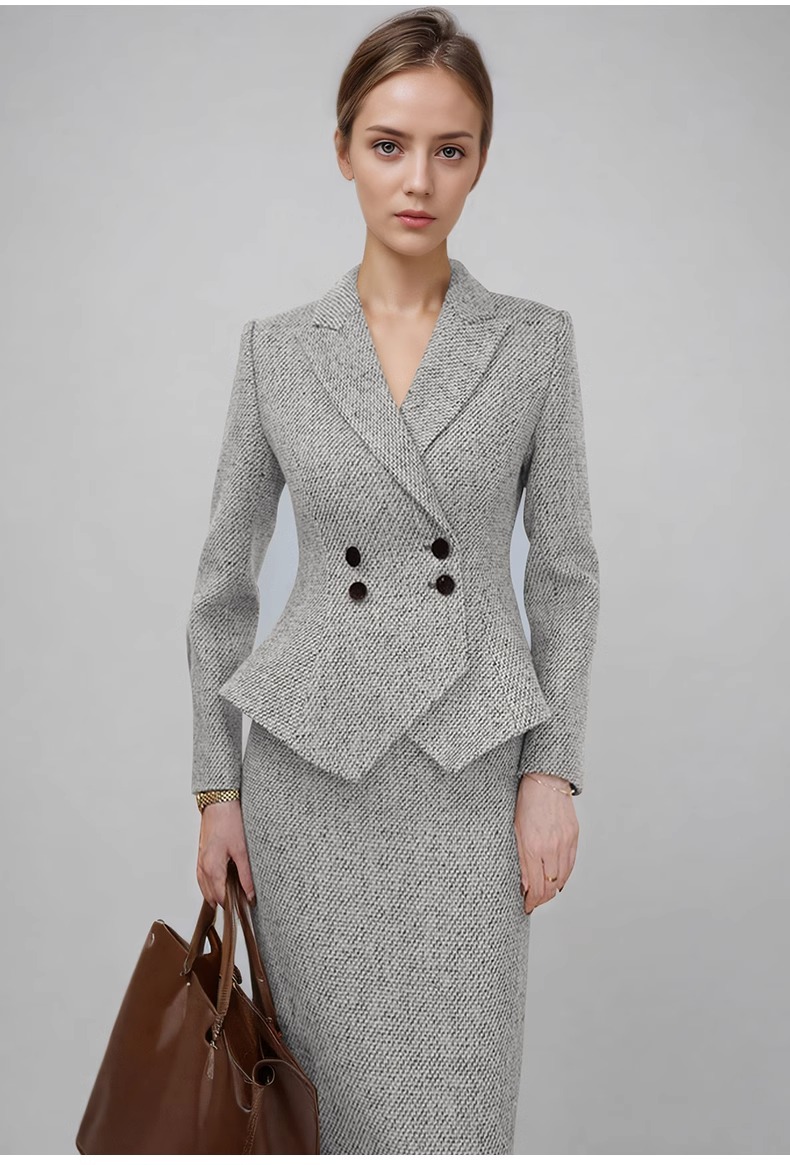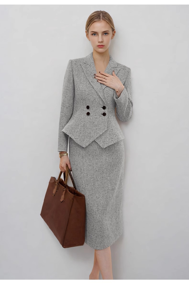 IWY/花灰色高级感西装套裙秋冬正式场合正装酒店经理工作服教师职业装24CS662