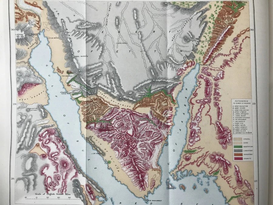 1883年 西奈半岛与巴勒斯坦 配彩色拉页地图 漆布精装大32开
