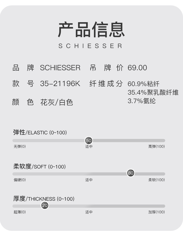 - 来自德国的SCHIESSER舒雅,专注做内衣一百四十余年,不遗余力的材料创新,因材而异的专业剪裁,健康环保的加工技术以及充满文化关注的时尚主题,做你认识之外的舒适内衣。