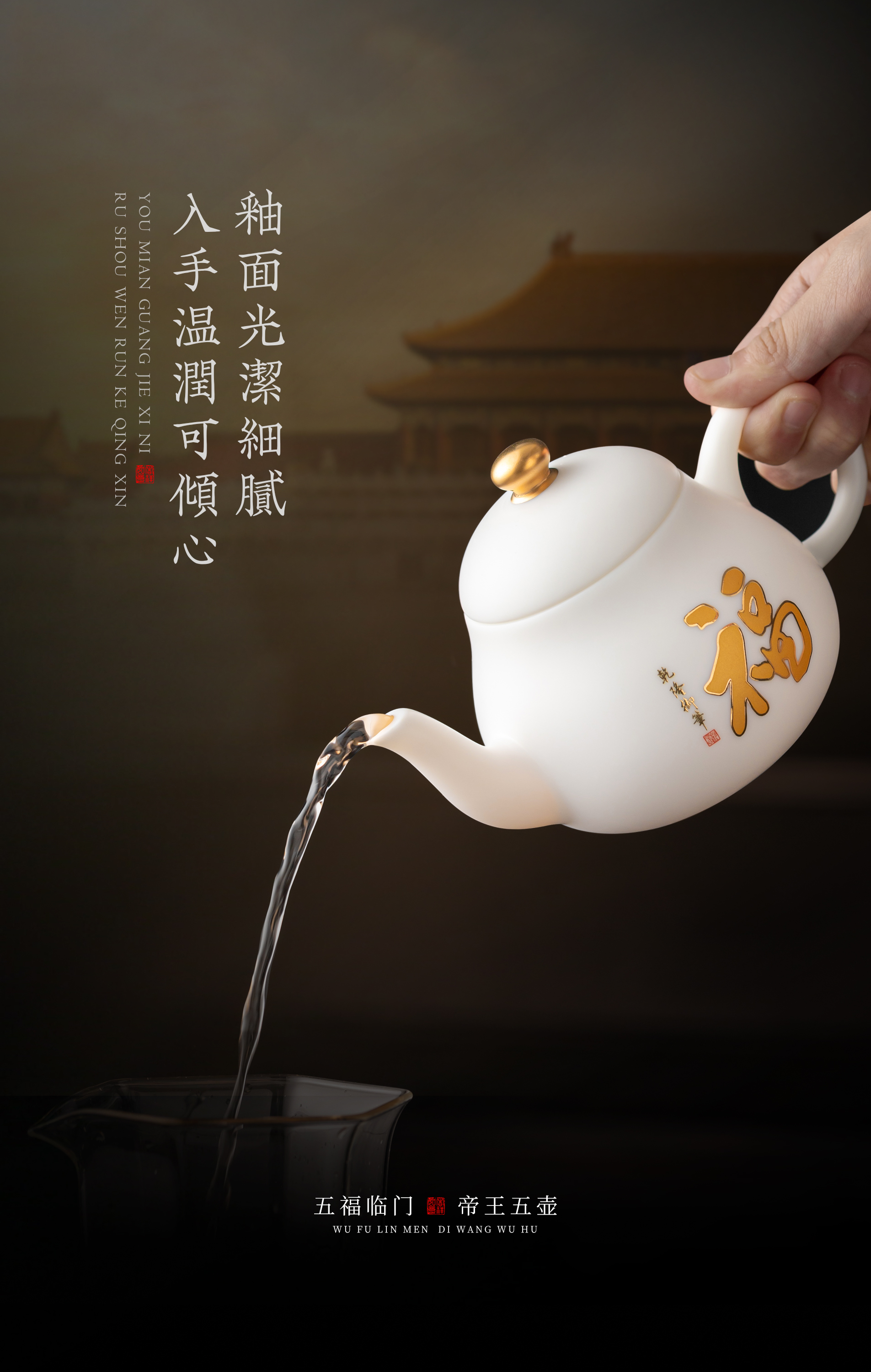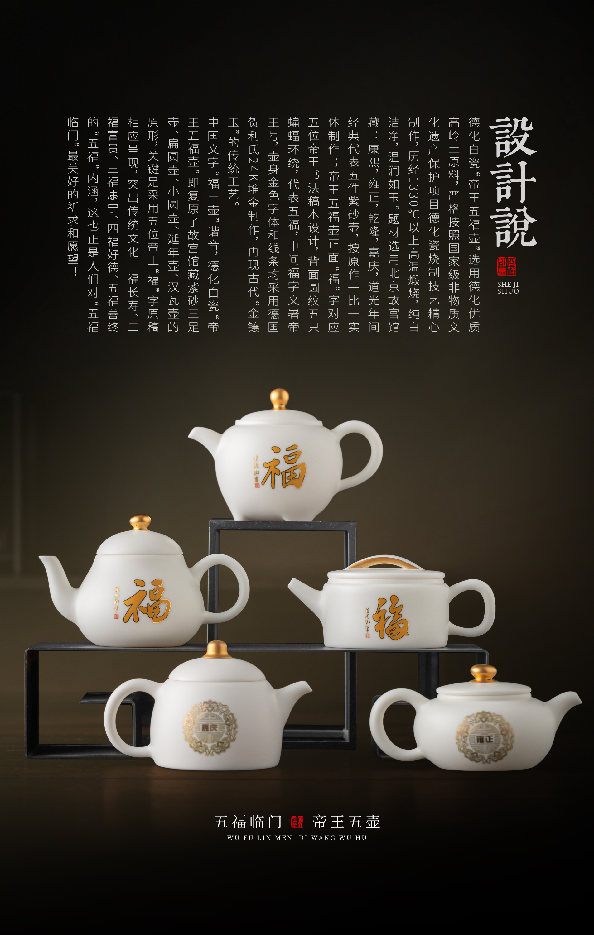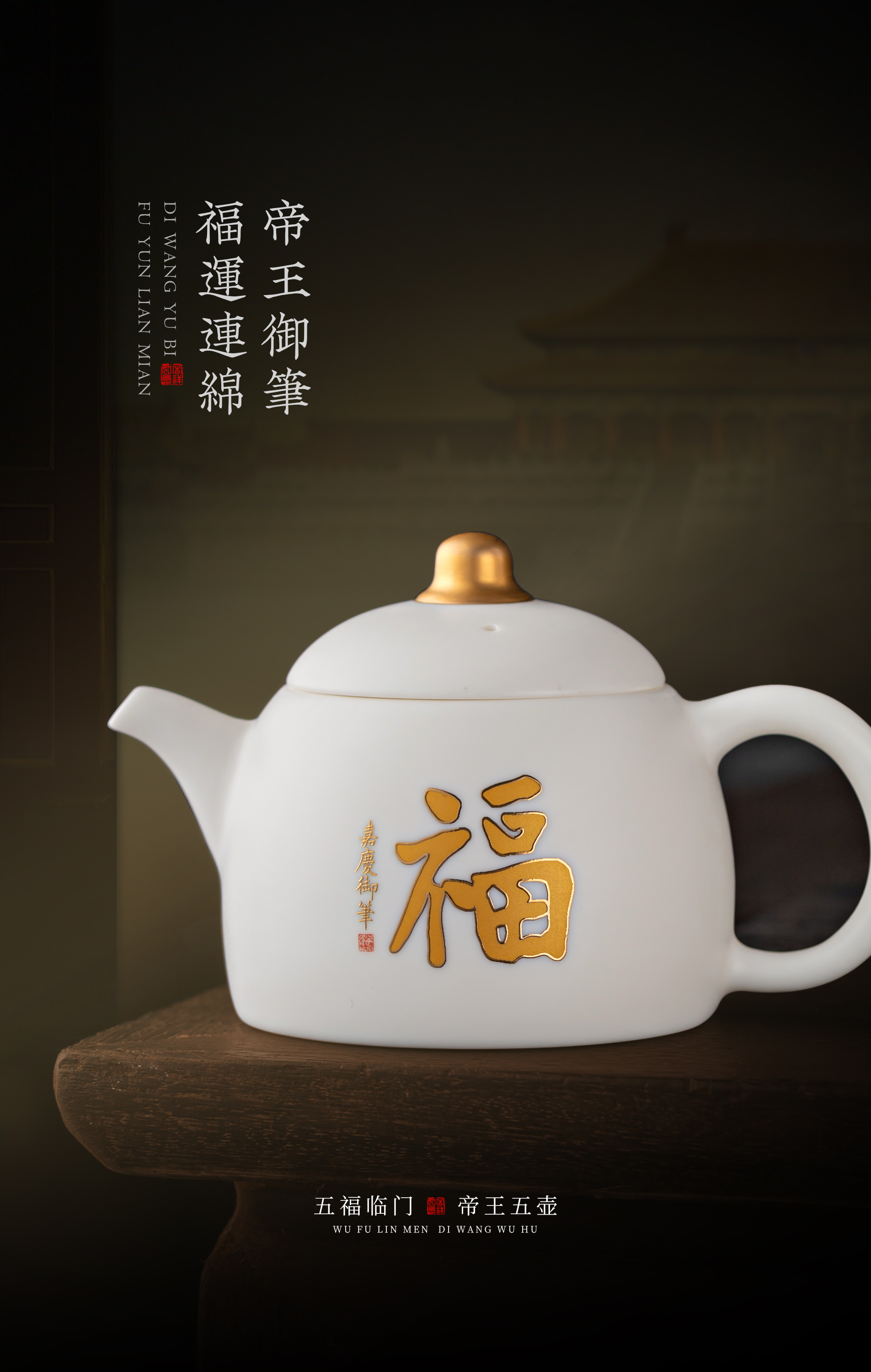 【五福临门 帝王五壶】帝王五福壶,帝王御笔 福运连绵,堆金工艺 触感立体,透亮岩脂 润泽如玉,精美好礼 馈赠佳选