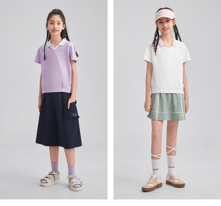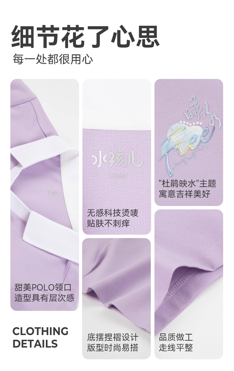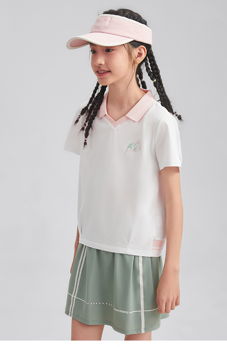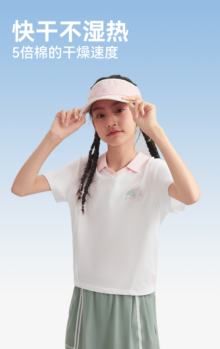 水孩儿童装女童速干短袖夏季新款儿童吸湿透气T恤大童翻领上衣