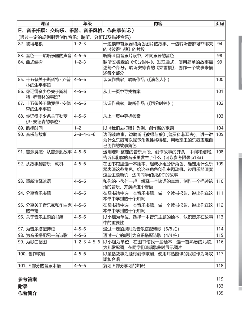 本书含有101项妙趣横生、实用易学的音乐课堂游戏,包括掌握节奏、聆听旋律、调性调号、乐谱音符、视唱练耳五个章节。每个章节都按照一定的逻辑顺序编排而成,对每个知识点都标注了相应的等级。本书不仅能为我国中小学音乐教师提供丰富的课堂游戏素材和知识补充材料,使课堂更具趣味性与互动性,同时还能启发教师结合本土文化元素,创作原创的音乐游戏,丰富教学内容。