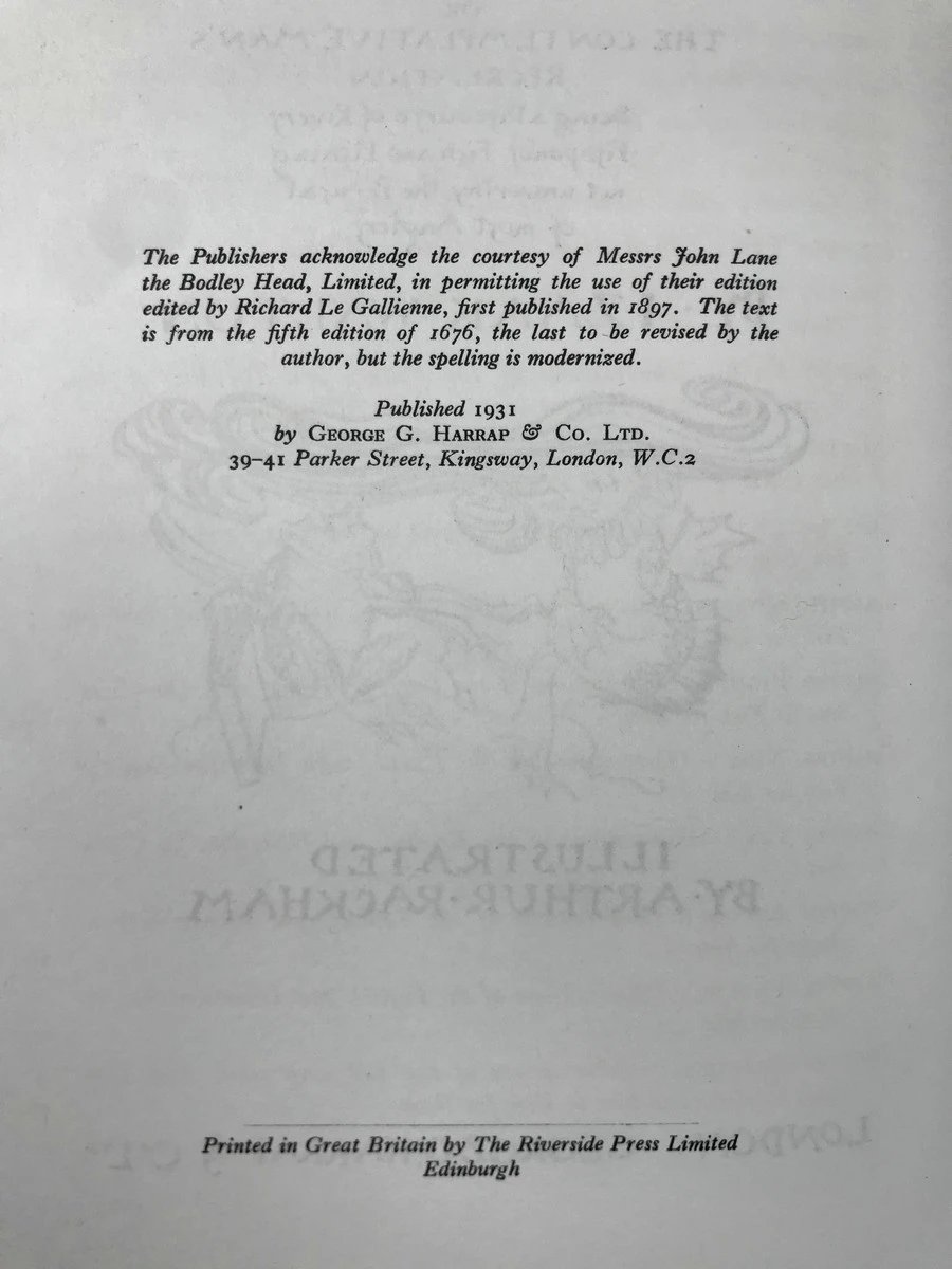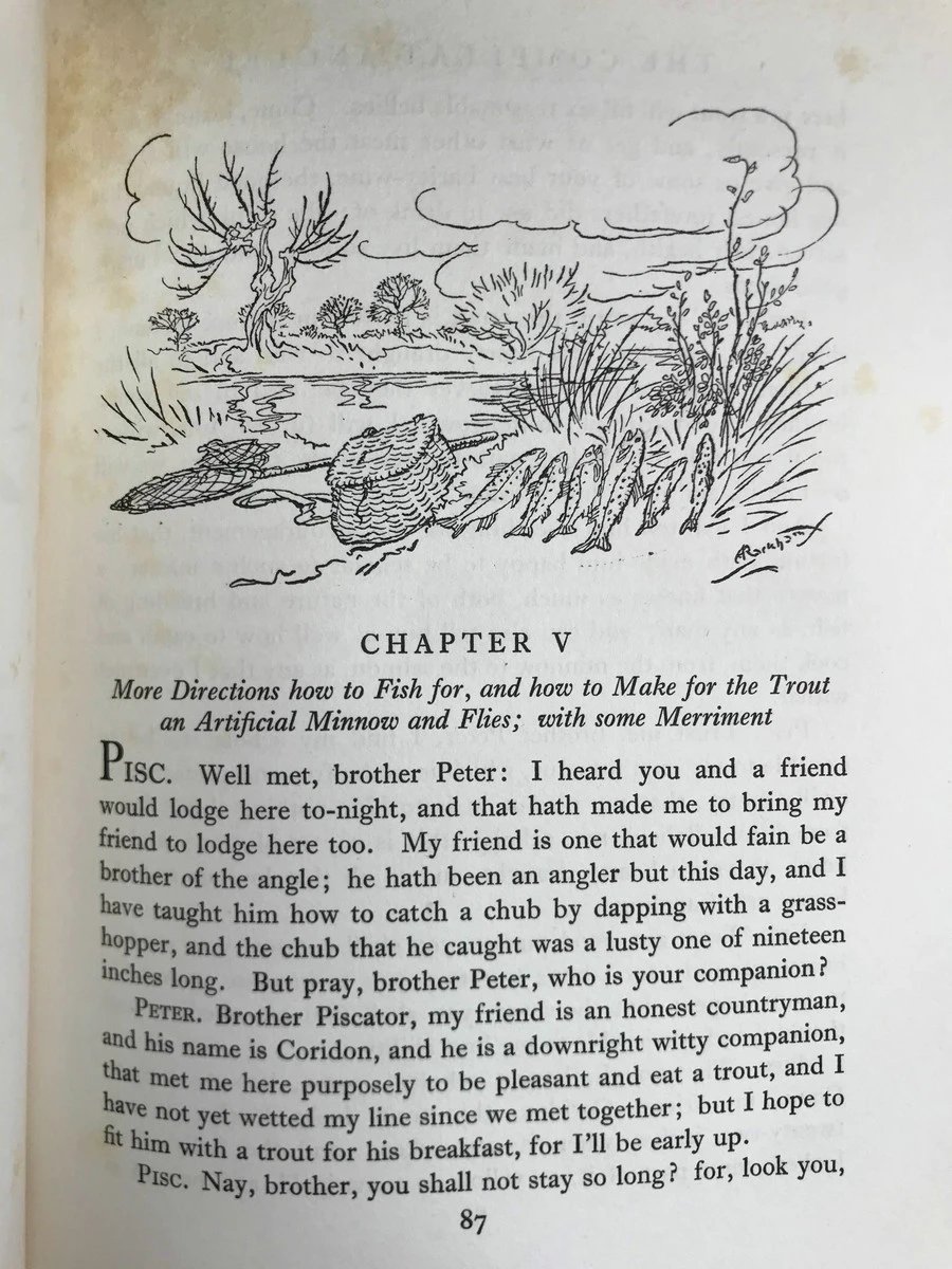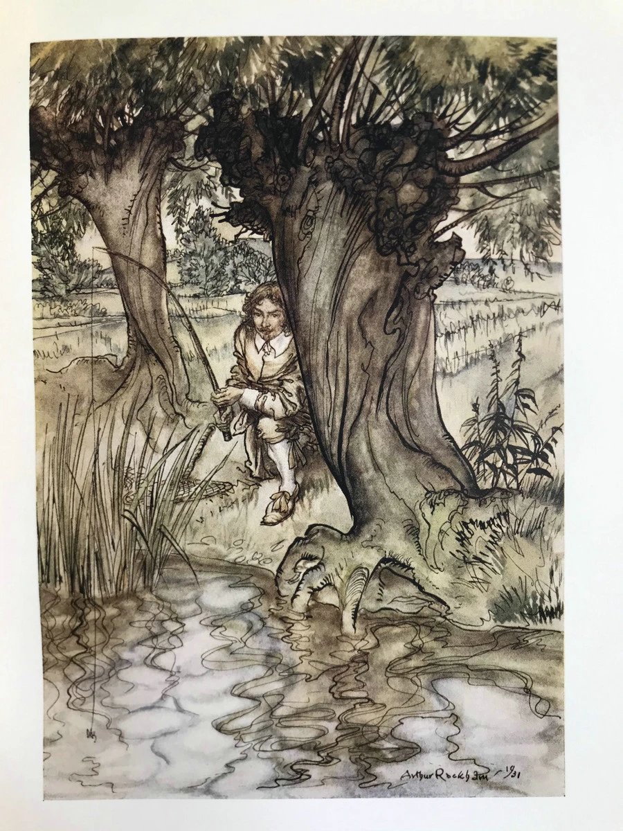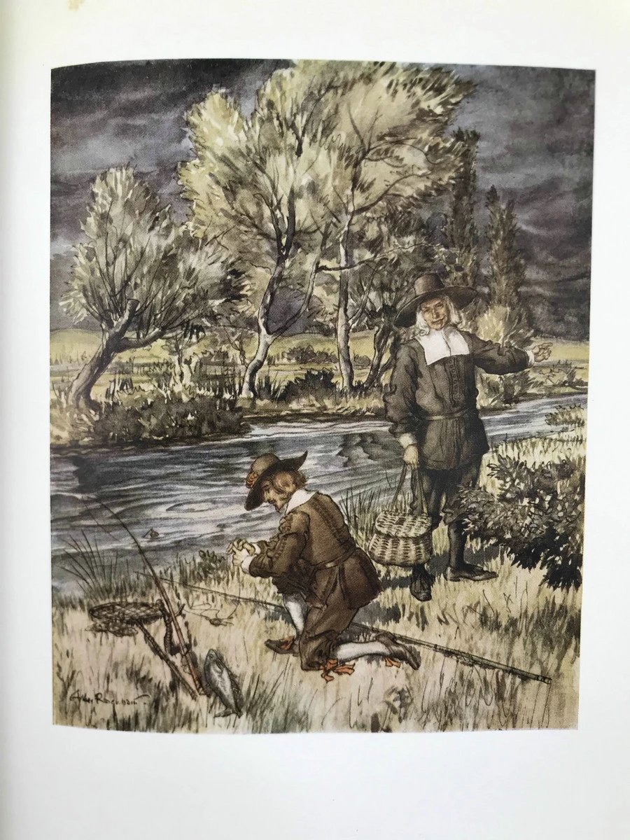 鬼才拉克姆签名限量版!1931年 沃尔顿《钓客清话》 12幅彩色与大量黑白文间插图 全犊皮(vellum)精装16开