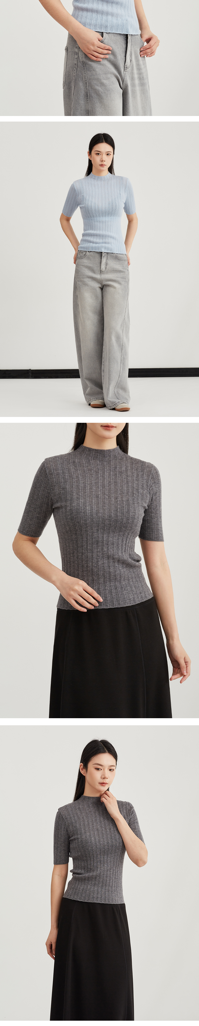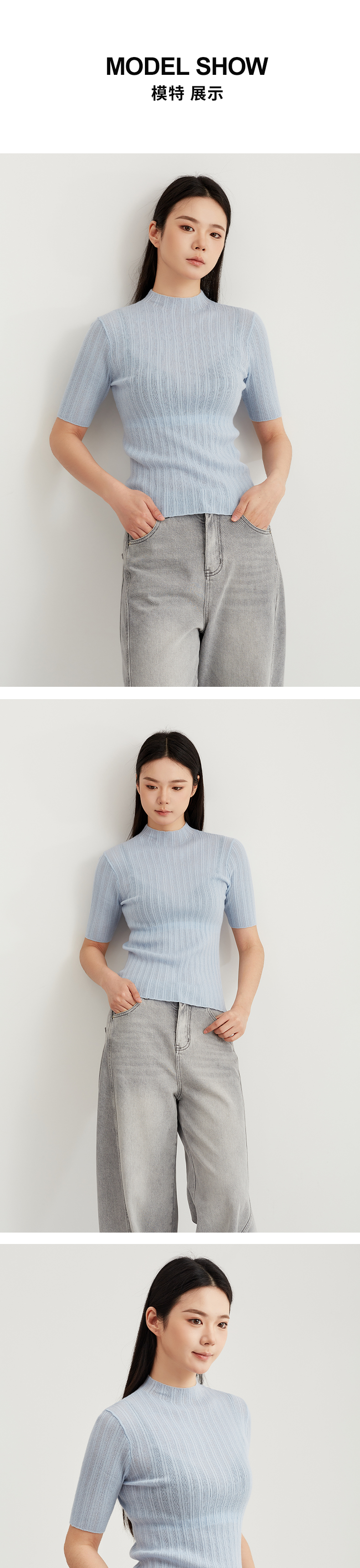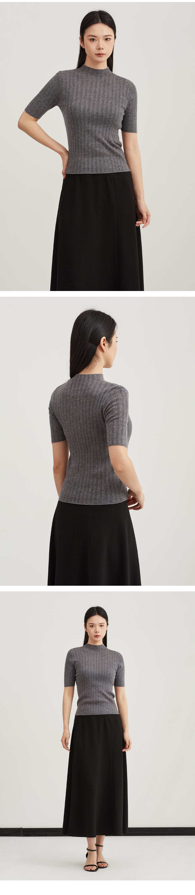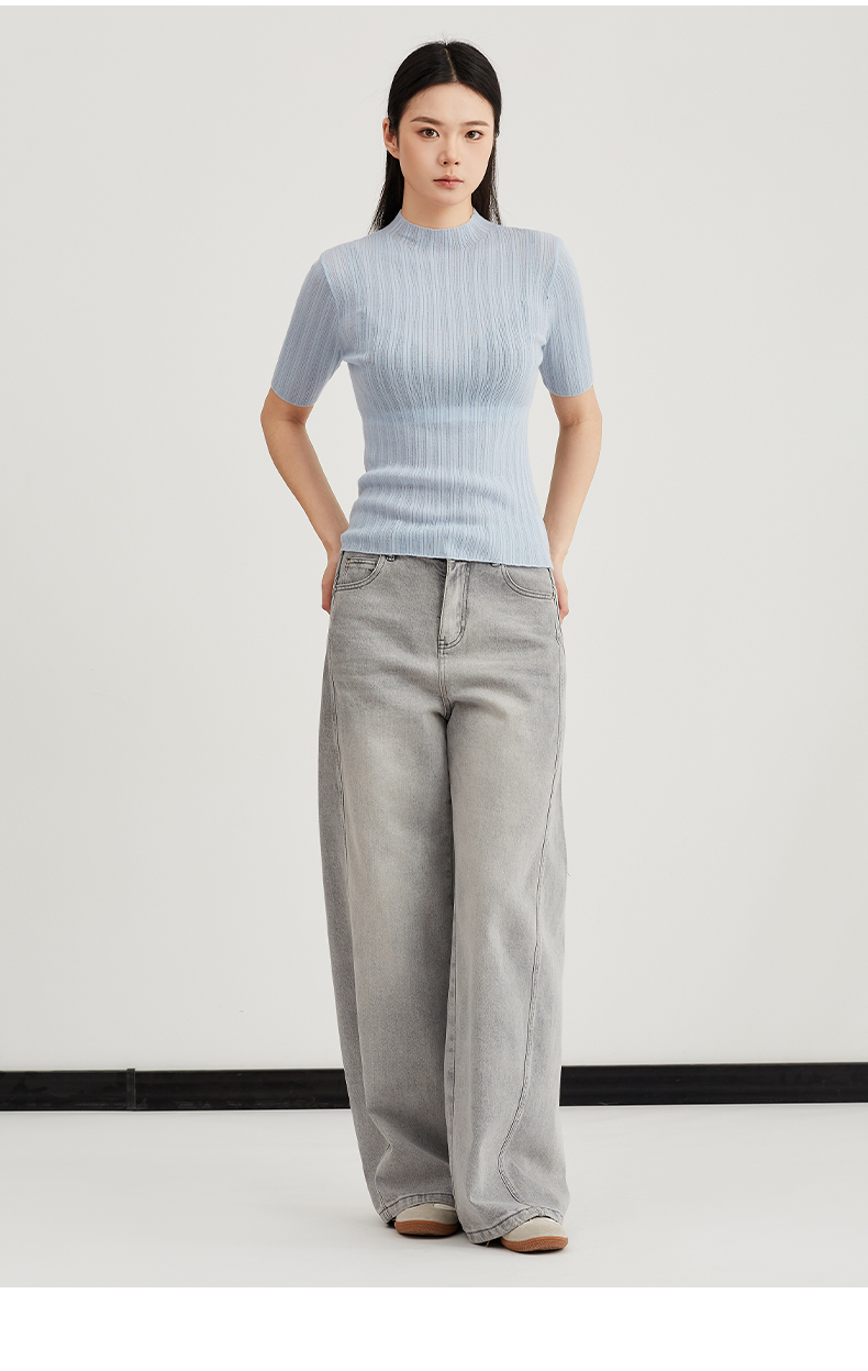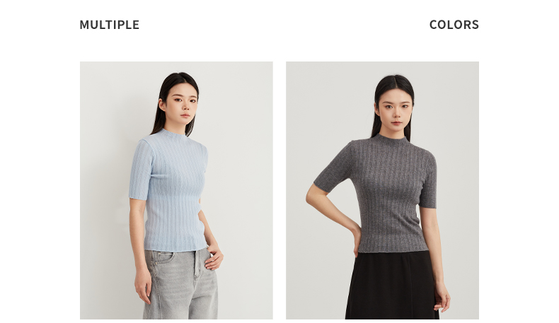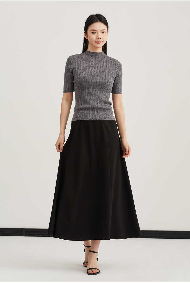【内搭极简风】阿菁娜春季新款通勤万能内搭极简坑风条针织衫半高领中袖设计轻松打造干练高级感F31C301005