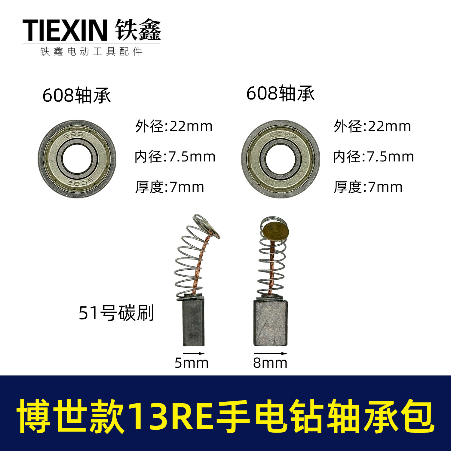【货号01792】博世款13RE手电钻轴承附件包608轴承2个5*8碳刷一副电钻上下轴承修理包