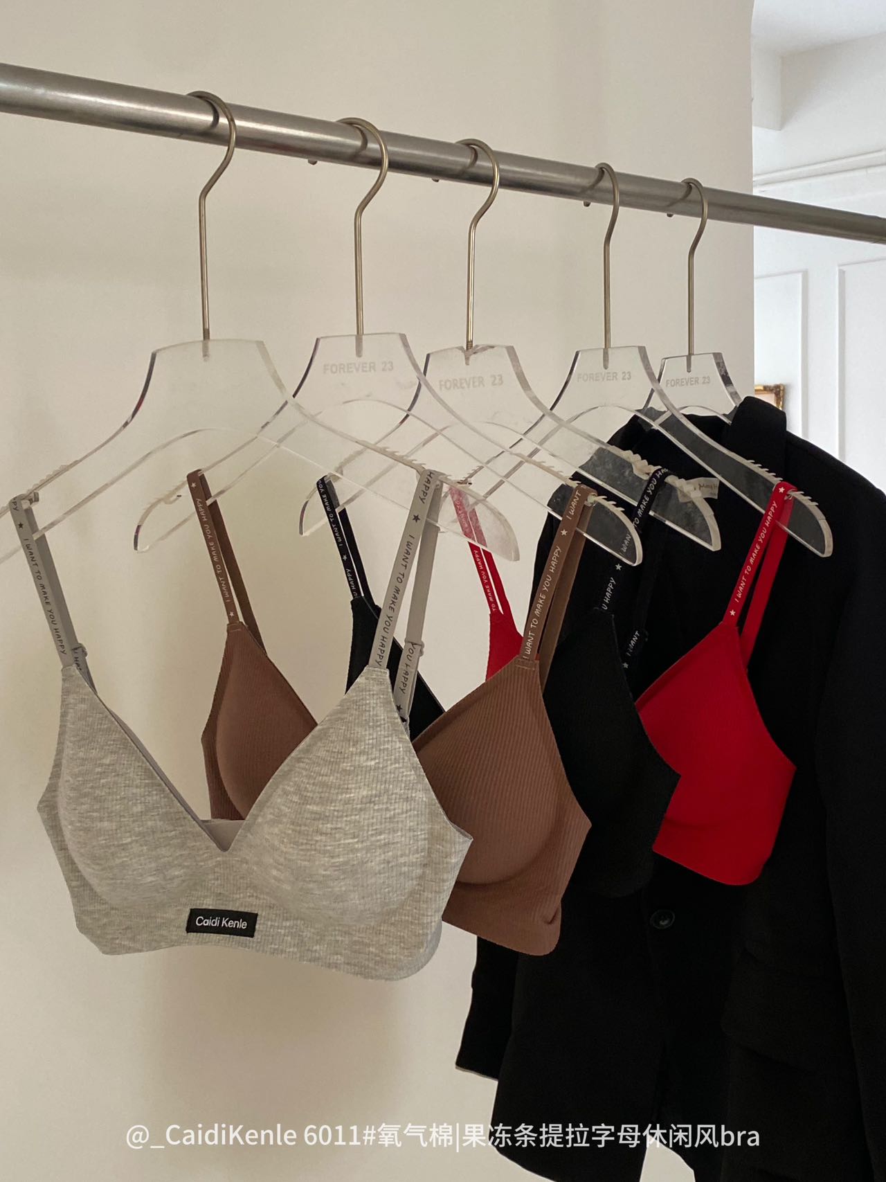 【GZ】无忧购果冻条提拉字母休闲风bra云感舒适文胸聚拢上托内衣6011(截单后3-5天发货)