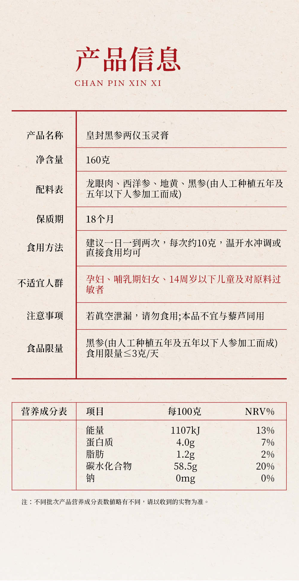 皇封黑参两仪玉灵膏(160g/瓶)