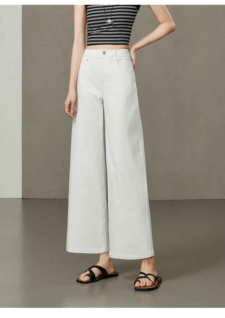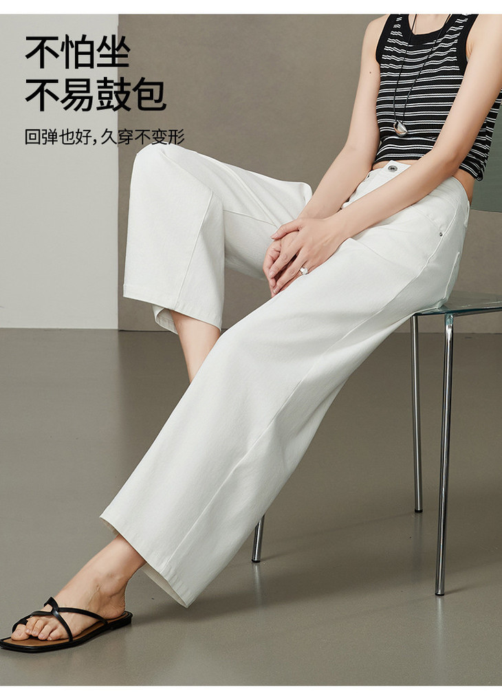 【白色九分阔腿裤】逸阳夏薄软垂宽松显瘦弹力小个子裤子6362