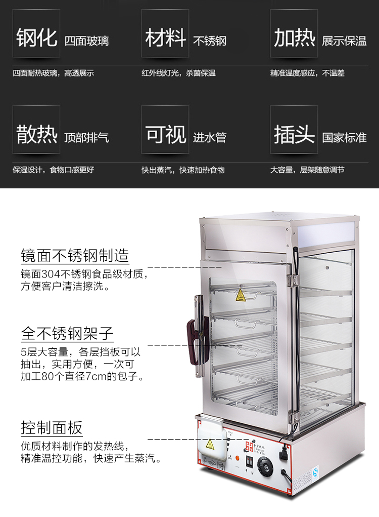 lafa咖啡便利店蒸包机商用钢化玻璃蒸包柜包子馒头保温炉