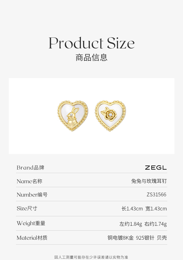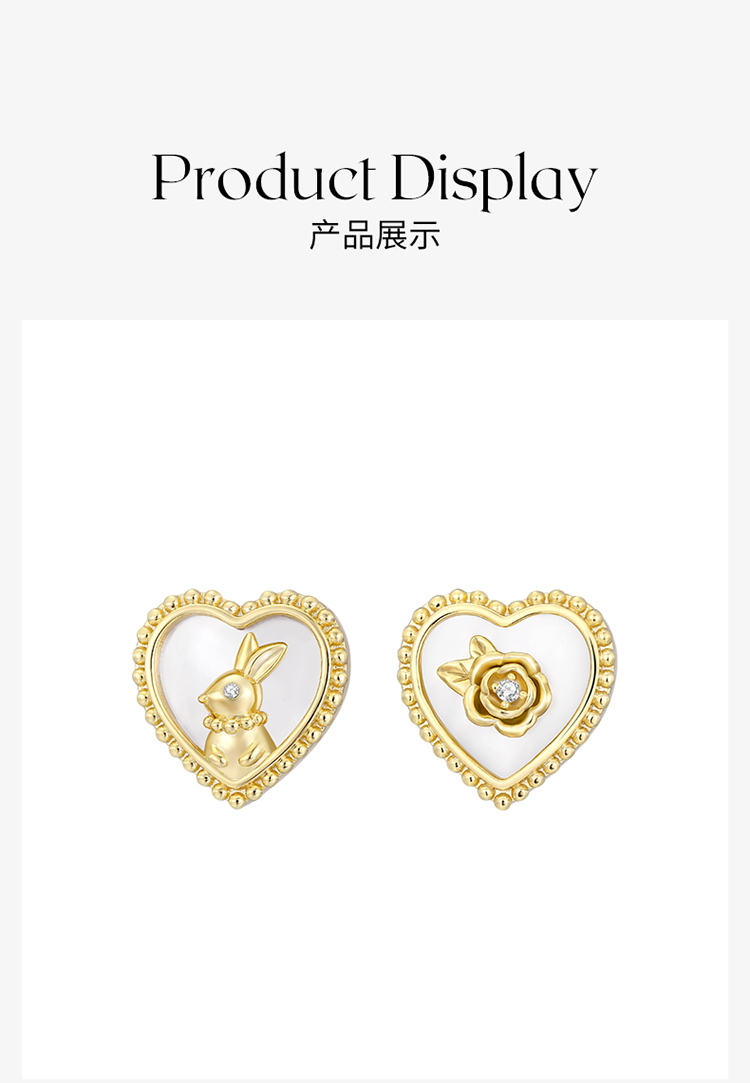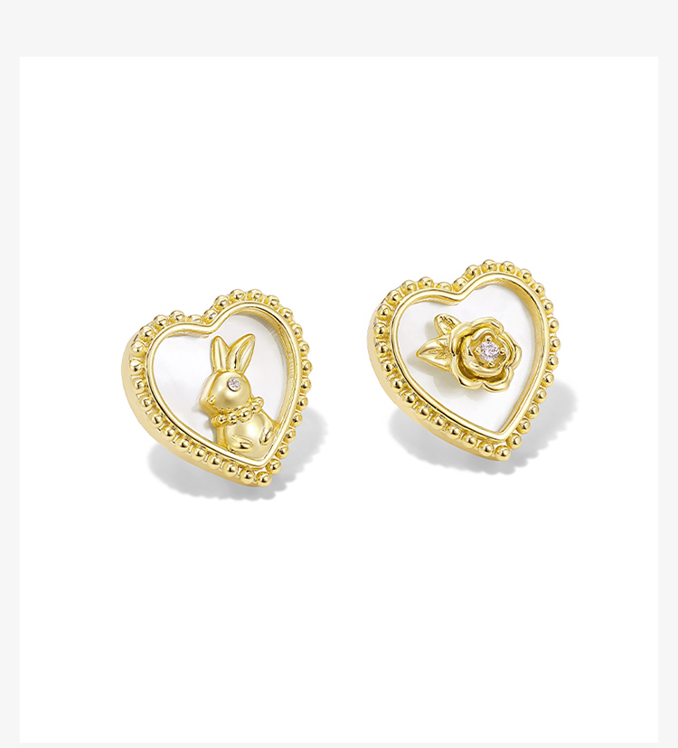 ZEGL设计师本命兔年系列法式兔爱心耳环女复古耳钉银针秋冬耳饰品