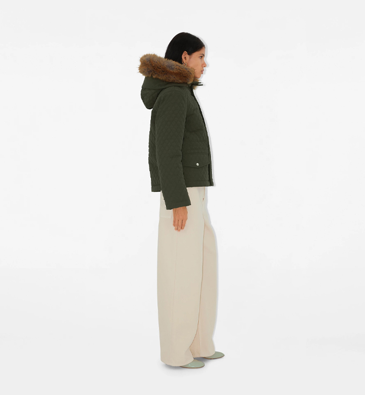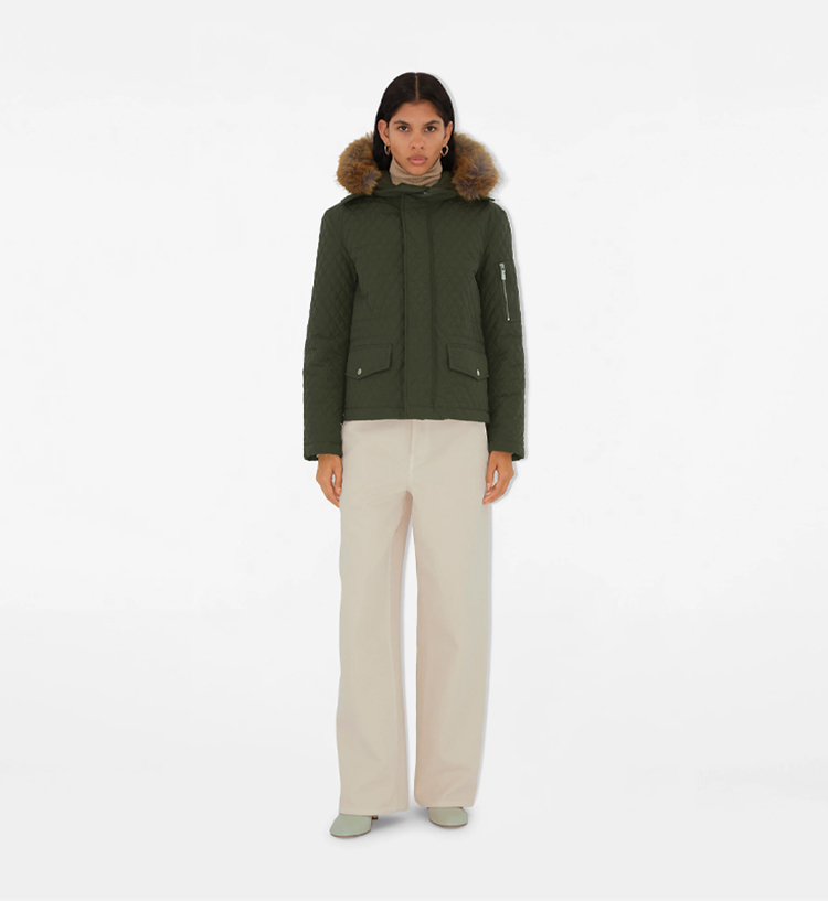BURBERRY 巴宝莉 女士马术骑士徽标盾牌铭牌绗缝棉混纺棉服 绿色 8091555 C1173